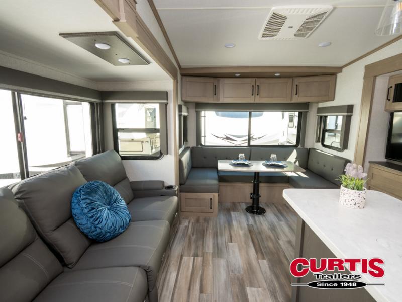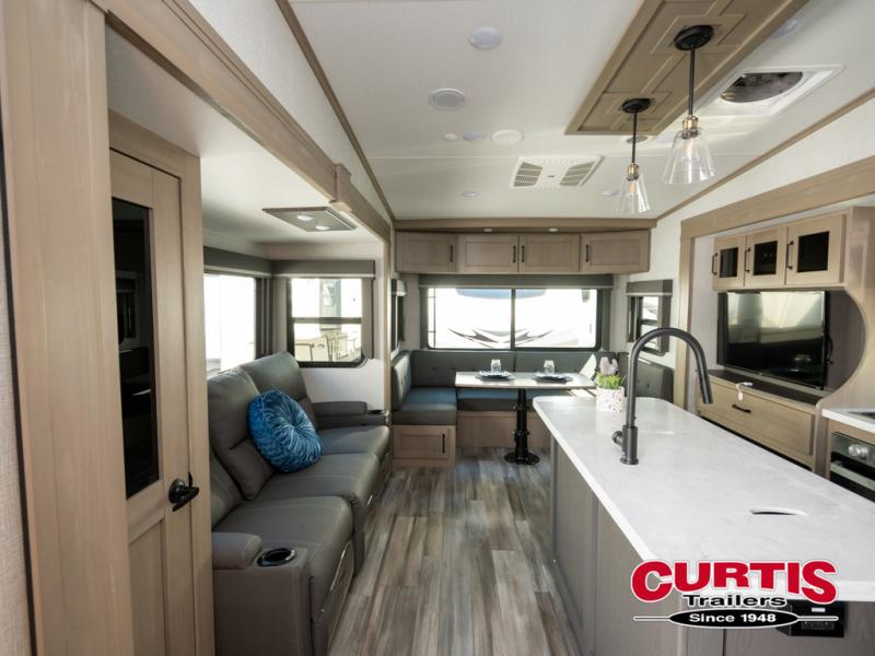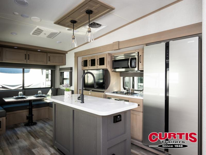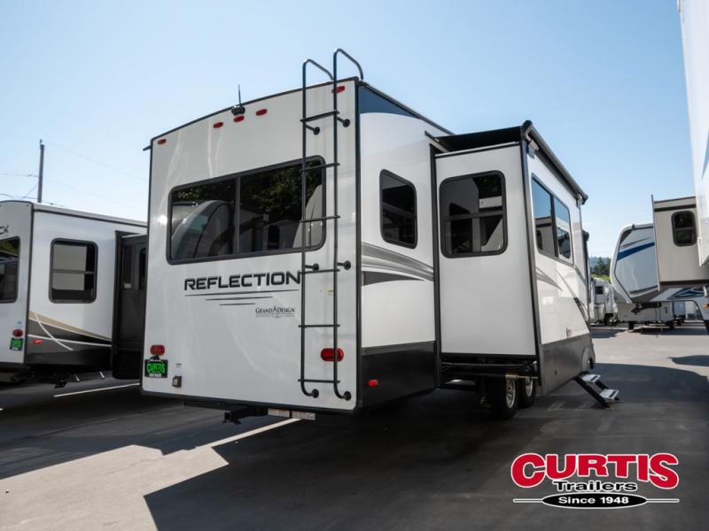 Each Reflection fifth wheel and travel trailer by Grand Design is packed with luxury features for an overall better camping experience! The MORryde 3000CRE suspension provides smooth towing to your destination and the durable construction materials mean you can enjoy your RV for years to come. These units include the Arctic 4-Seasons Protection Package that will extend your camping season thanks to the extreme temperature testing and maximum heating power. You will also appreciate the Solar Package that will allow you to do some off-grid camping and the Compass Connect system so you can control your RV's functions right from the palm of your hand. The interior of these travel trailers and fifth wheels are designed to make you feel at home with residential cabinetry, solid surface countertops, blackout roller shades, a spacious shower with a glass door, residential bedrooms, and the list goes on! Choose a Reflection today and start a new adventure tomorrow!