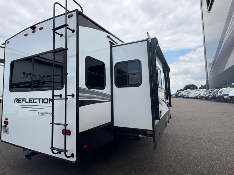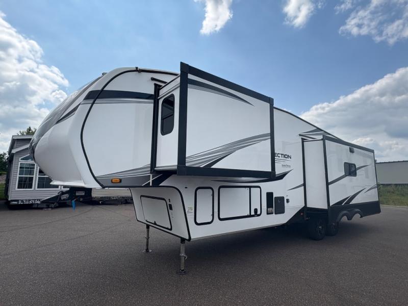 Each Reflection fifth wheel and travel trailer by Grand Design is packed with luxury features for an overall better camping experience! The MORryde 3000CRE suspension provides smooth towing to your destination and the durable construction materials mean you can enjoy your RV for years to come. These units include the Arctic 4-Seasons Protection Package that will extend your camping season thanks to the extreme temperature testing and maximum heating power. You will also appreciate the Solar Package that will allow you to do some off-grid camping and the Compass Connect system so you can control your RV's functions right from the palm of your hand. The interior of these travel trailers and fifth wheels are designed to make you feel at home with residential cabinetry, solid surface countertops, blackout roller shades, a spacious shower with a glass door, residential bedrooms, and the list goes on! Choose a Reflection today and start a new adventure tomorrow!