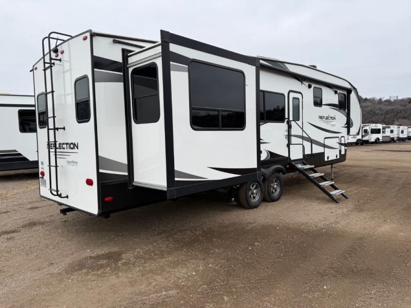 Each Reflection fifth wheel and travel trailer by Grand Design is packed with luxury features for an overall better camping experience! The MORryde 3000CRE suspension provides smooth towing to your destination and the durable construction materials mean you can enjoy your RV for years to come. These units include the Arctic 4-Seasons Protection Package that will extend your camping season thanks to the extreme temperature testing and maximum heating power. You will also appreciate the Solar Package that will allow you to do some off-grid camping and the Compass Connect system so you can control your RV's functions right from the palm of your hand. The interior of these travel trailers and fifth wheels are designed to make you feel at home with residential cabinetry, solid surface countertops, blackout roller shades, a spacious shower with a glass door, residential bedrooms, and the list goes on! Choose a Reflection today and start a new adventure tomorrow!