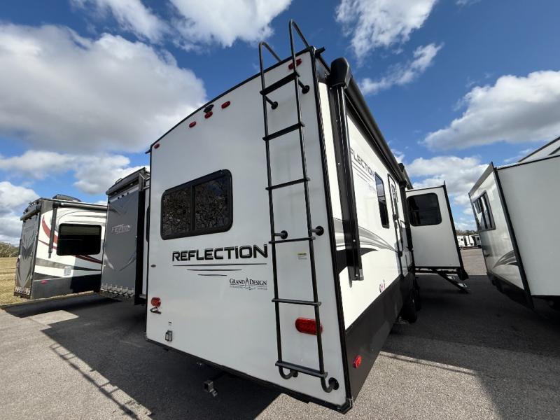 Each Reflection fifth wheel and travel trailer by Grand Design is packed with luxury features for an overall better camping experience! The MORryde 3000CRE suspension provides smooth towing to your destination and the durable construction materials mean you can enjoy your RV for years to come. These units include the Arctic 4-Seasons Protection Package that will extend your camping season thanks to the extreme temperature testing and maximum heating power. You will also appreciate the Solar Package that will allow you to do some off-grid camping and the Compass Connect system so you can control your RV's functions right from the palm of your hand. The interior of these travel trailers and fifth wheels are designed to make you feel at home with residential cabinetry, solid surface countertops, blackout roller shades, a spacious shower with a glass door, residential bedrooms, and the list goes on! Choose a Reflection today and start a new adventure tomorrow!