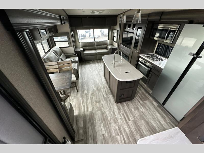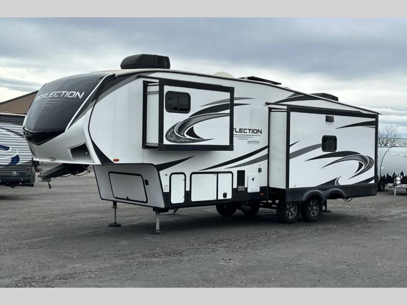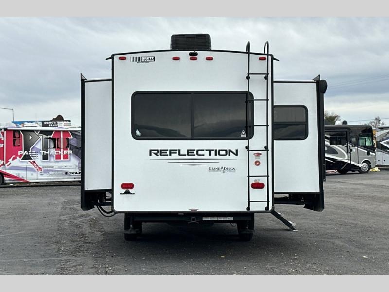 Each Reflection fifth wheel and travel trailer by Grand Design is packed with luxury features for an overall better camping experience! The MORryde 3000CRE suspension provides smooth towing to your destination and the durable construction materials mean you can enjoy your RV for years to come. These units include the Arctic 4-Seasons Protection Package that will extend your camping season thanks to the extreme temperature testing and maximum heating power. You will also appreciate the Solar Package that will allow you to do some off-grid camping and the Compass Connect system so you can control your RV's functions right from the palm of your hand. The interior of these travel trailers and fifth wheels are designed to make you feel at home with residential cabinetry, solid surface countertops, blackout roller shades, a spacious shower with a glass door, residential bedrooms, and the list goes on! Choose a Reflection today and start a new adventure tomorrow!