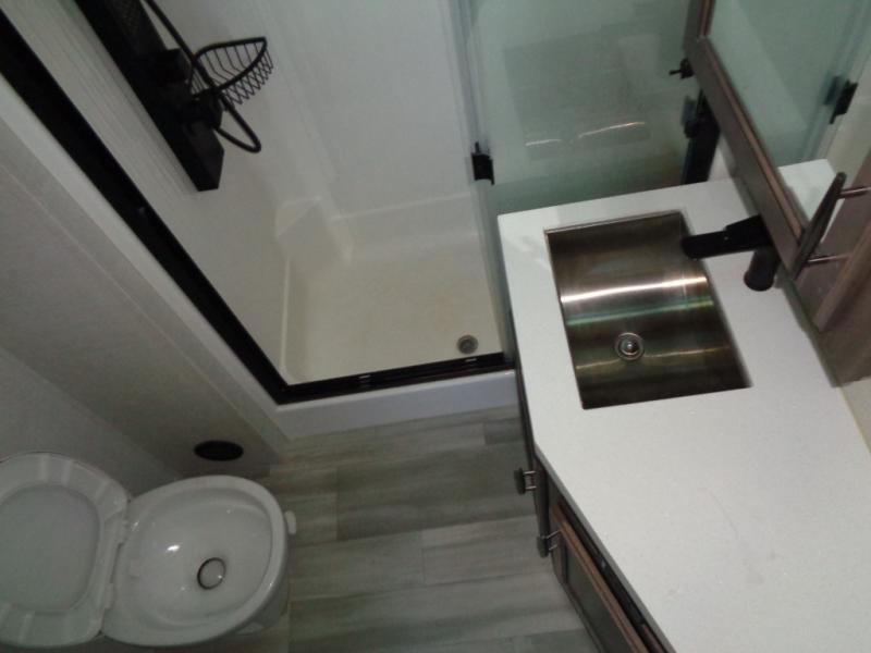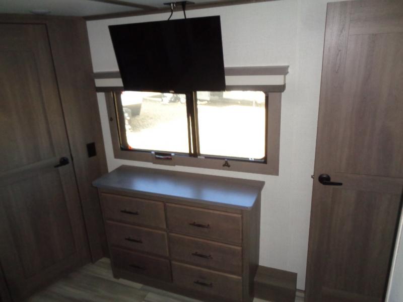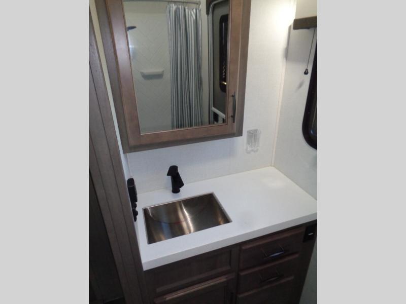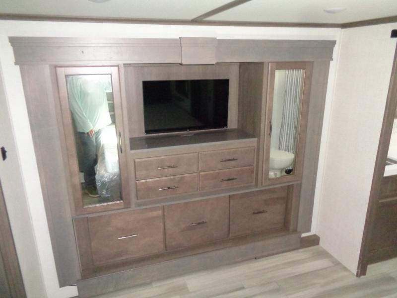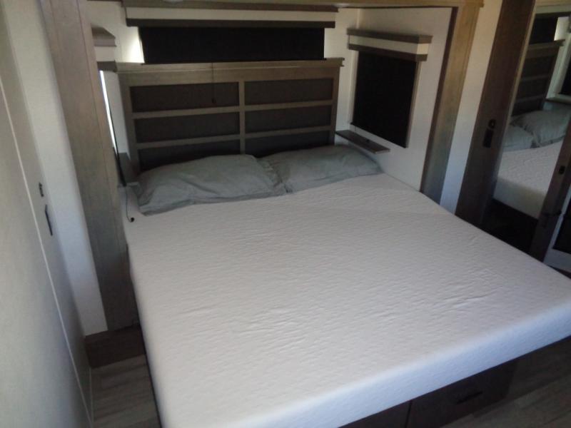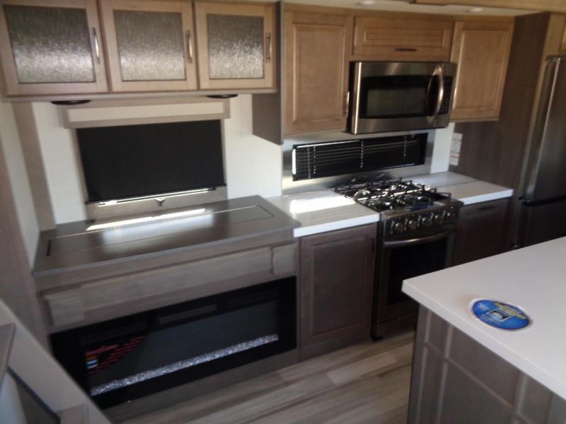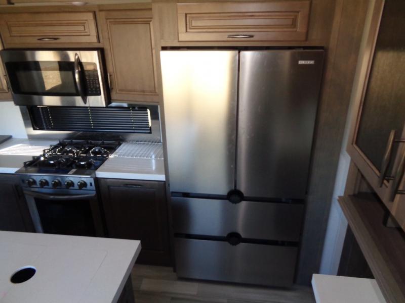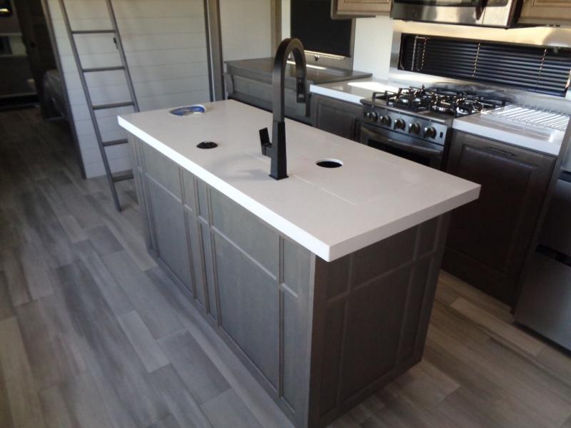 Each Solitude fifth wheel by Grand Design features a 101" wide-body construction, heavy duty 7,000 lb. axles, frameless tinted windows, and high-gloss gel coat sidewalls. You can camp year around thanks to the Weather-Tek Package that includes a 35K BTU high-capacity furnace, an all-in-one enclosed and heated utility center, and a fully enclosed underbelly with heated tanks and storage. Inside, you'll love the premium roller shades, hardwood cabinet doors, solid surface countertops and sinks, plus residential finishes throughout to make you truly feel at home. Each model also includes a MORryde CRE3000 suspension system, self adjusting brakes, and a MORryde pin box that will provide smooth towing from home to campground. Affordable luxury is possible with the Solitude fifth wheels; choose yours today!