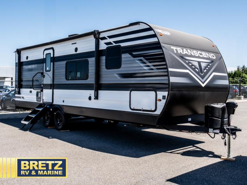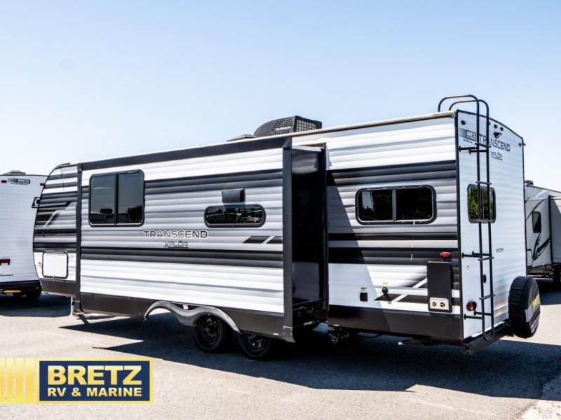 The customer-focused, quality-built Transcend Xplor travel trailers by Grand Design are your ticket to fun and adventure. The upgraded Strongwall metal exterior will hold up through the years, and the heated and enclosed underbelly means you can camp in all seasons. You will appreciate the power tongue jack when it comes time to set up, as well as the all-in-one utility center and the detachable power cord with an LED light. These models include many outlets throughout, USB ports to charge your gadgets, and an AM/FM/Bluetooth stereo with exterior speakers to keep you entertained. The interior of the Transcend Xplor will have you feeling right at home with upgraded residential furniture, a large, solid bedroom door, and residential countertops, and the list goes on!