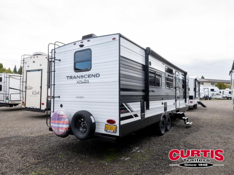 The customer-focused, quality-built Transcend Xplor travel trailers by Grand Design are your ticket to fun and adventure. The upgraded Strongwall metal exterior will hold up through the years, and the heated and enclosed underbelly means you can camp in all seasons. You will appreciate the power tongue jack when it comes time to set up, as well as the all-in-one utility center and the detachable power cord with an LED light. These models include many outlets throughout, USB ports to charge your gadgets, and an AM/FM/Bluetooth stereo with exterior speakers to keep you entertained. The interior of the Transcend Xplor will have you feeling right at home with upgraded residential furniture, a large, solid bedroom door, and residential countertops, and the list goes on!