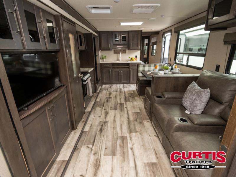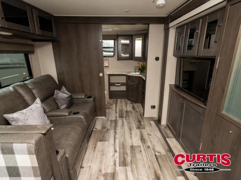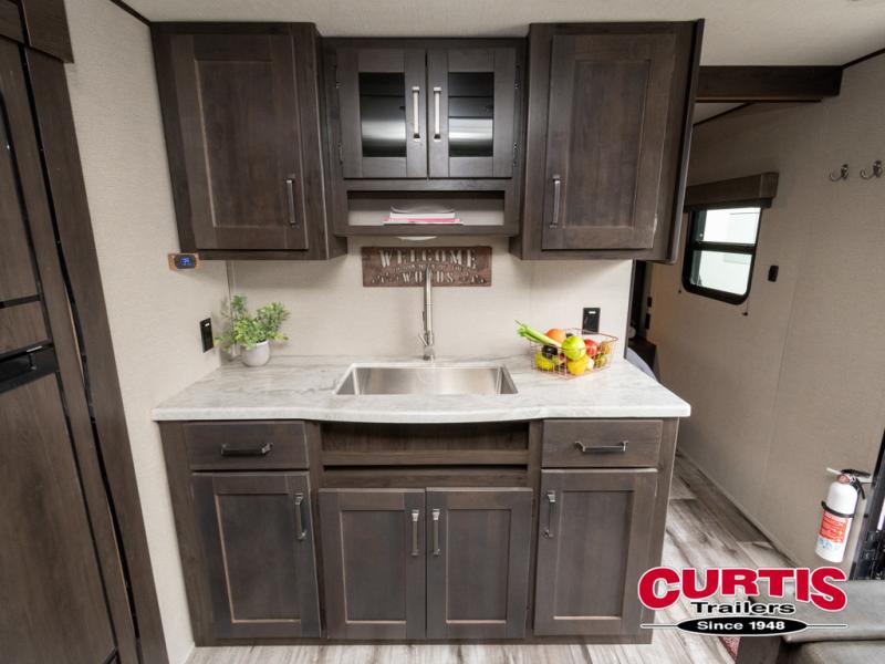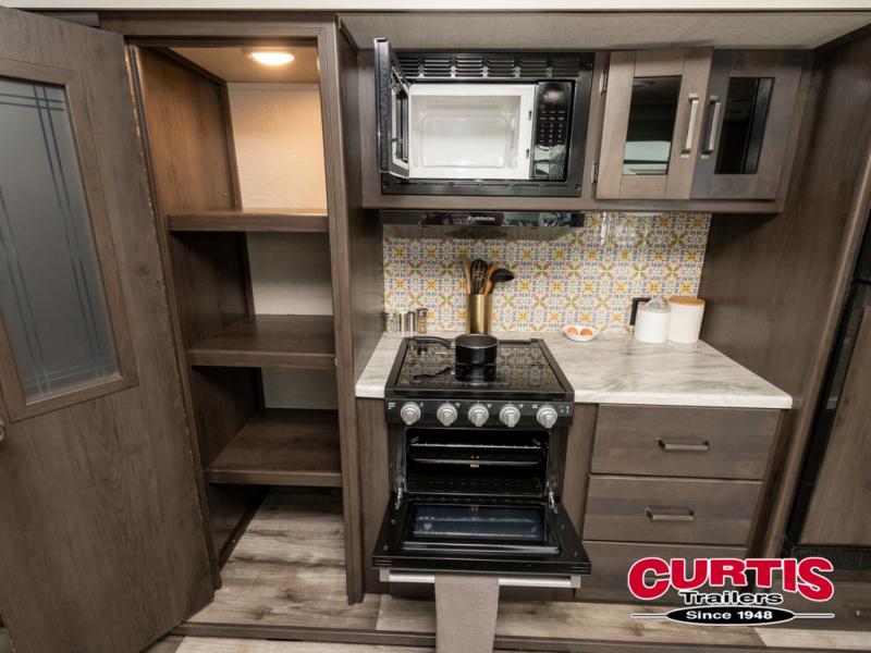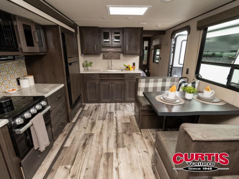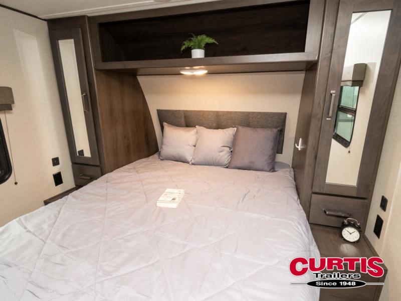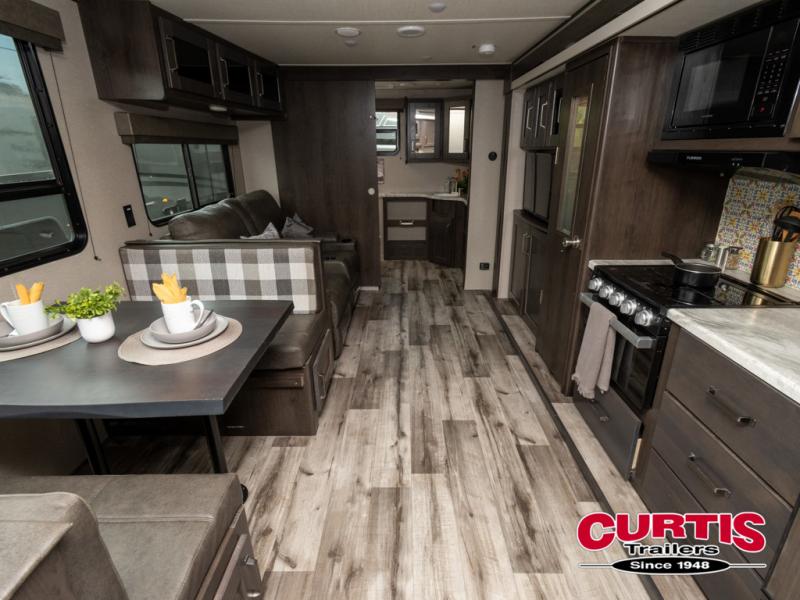 Your search for the perfect couple's trailer is over with this RV in tow! You will enjoy your own private bedroom up front with a queen bed, overhead storage, and TV prep if you choose to bring along your own television. The spacious full rear bath includes a linen closet and a walk-in shower to easily clean up each day. Relax on the theatre seating after a long day outdoors, or you can choose the optional tri-fold sofa if you need additional sleeping space. The booth dinette can also be used for an overnight guest or two little ones. This model also includes plenty of storage space and plenty of counter space to prep and cook at-home meals!