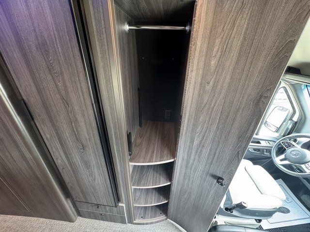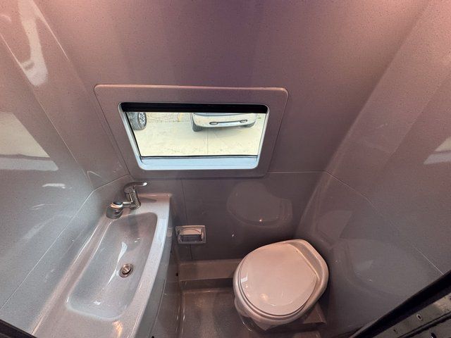The fully enclosed wet bath with window and privacy shade provides added ventilation and natural light. It’s designed for comfort while maintaining the compact efficiency Class B owners appreciate.