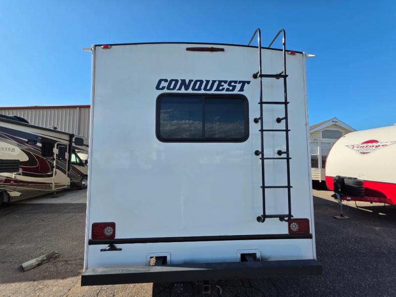 As you look forward to your next getaway, think about the many different ways that this Conquest Class C gas motorhome will come in handy! When you're tired after a long day of hiking, you won't have to search out a local restaurant because you'll be able to easily make your own dinner on the three-burner range in the kitchen, grab some condiments from the double-door refrigerator, and wash up the dirty dishes in the double sink. When you just want to rest, you have quite a few choices for that too with the booth dinette, the jackknife sofa, the bunk above the cab, and the RV queen bed in the rear private bedroom.