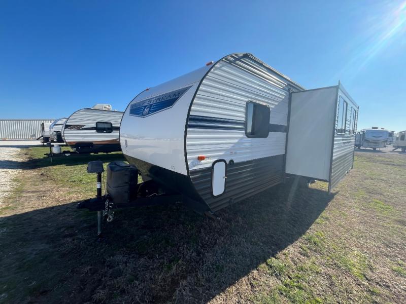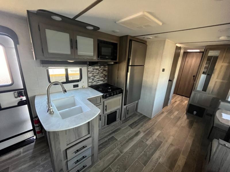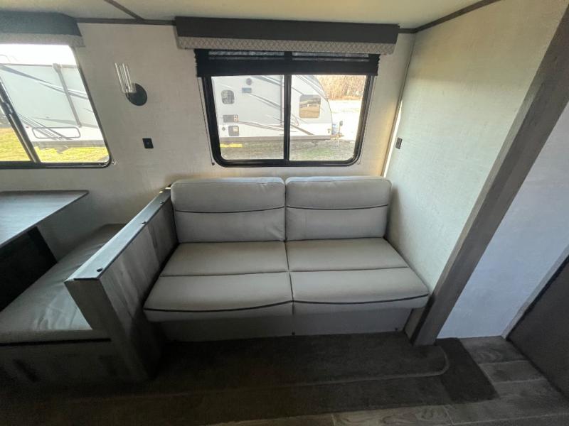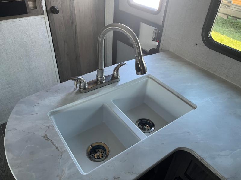 With any Kingsport Ultra Lite by Gulf Stream, you can enjoy a lightweight travel trailer on a budget with plenty of standard features to enjoy, and the required Lite Value Package offers convenience, comfort and Tech-Ready upgrades such as Wi-Fi and satellite TV ready connections, solar panel prep, back-up camera hookups, and multiple USB ports to keep the electronics charged. Each is constructed with a one-piece synthetic vinyl roof, fiberglass insulation hand-cut and glued in place, Butyl caulk for better seal and fewer streaks, and full-width steel outriggers for superior strength and support. Inside is easy to care for with vinyl wallcovering and high-performance vinyl flooring throughout, plus you will enjoy the upgraded furniture package, the designer backsplash in the kitchen, and the craft-made cabinetry with designer drawer and door pulls. Make your selection now!