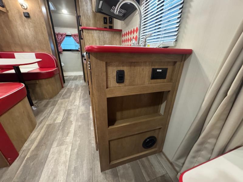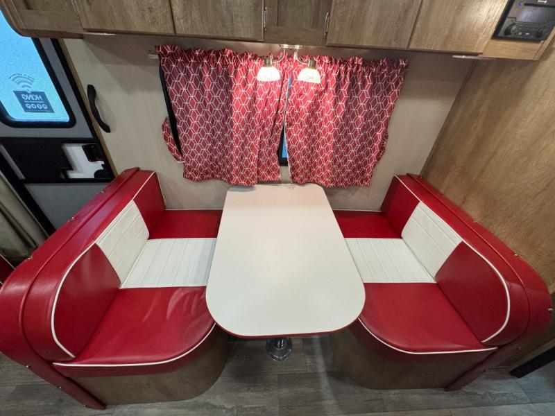 With any Vintage Cruiser by Gulf Stream you will be taken back to the fun of the 50's with vintage exterior graphics and classic interiors. Each model is constructed with a six-sided welded aluminum frame, vacuum bonded sidewalls with Azdel, and a vintage painted bumper you are sure to love. You may like to choose the optional "Woody" Package that includes an Oyster painted A-frame, Hickory Saddle floor vinyl, Southern Pine Sidewalls, and more rustic cabin features. The Vintage Cruiser travel trailers include high-performance vinyl flooring, LED interior ceiling lights, a seamless tub/shower surround, and vintage flat cabinet doors to name a few comforts you'll find throughout. These models are also prewired for roof A/C and come with a standard 20,000 BTU furnace or a 16,000 BTU furnace, depending on the model you choose. Nostalgia is waiting for you with a Vintage Cruiser!