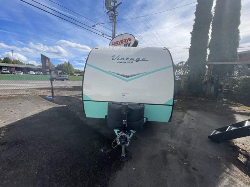 With any Vintage Cruiser by Gulf Stream you will be taken back to the fun of the 50's with vintage exterior graphics and classic interiors. Each model is constructed with a six-sided welded aluminum frame, vacuum bonded sidewalls with Azdel, and a vintage painted bumper you are sure to love. You may like to choose the optional "Woody" Package that includes an Oyster painted A-frame, Hickory Saddle floor vinyl, Southern Pine Sidewalls, and more rustic cabin features. The Vintage Cruiser travel trailers include high-performance vinyl flooring, LED interior ceiling lights, a seamless tub/shower surround, and vintage flat cabinet doors to name a few comforts you'll find throughout. These models are also prewired for roof A/C and come with a standard 20,000 BTU furnace or a 16,000 BTU furnace, depending on the model you choose. Nostalgia is waiting for you with a Vintage Cruiser!