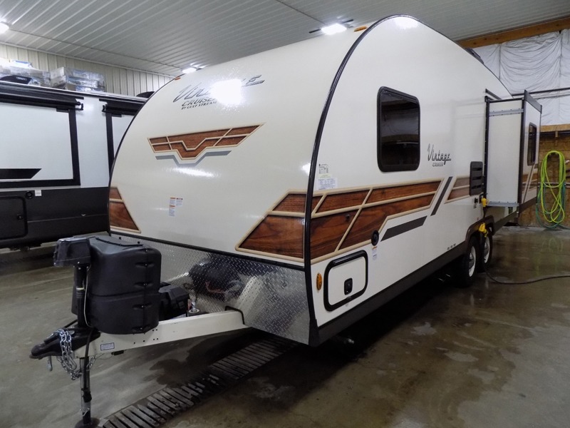 Step into comfort with this classic travel trailer in tow. You will find a rear vintage booth dinette and a sofa slide out with end tables to set your drinks on, and an optional 19" LED HDTV can be added for entertainment. The kitchen is complete with a microwave oven, a two burner cooktop, plus overhead cabinets for your belongings. After a day outdoors, you can clean up in the 24" x 36" shower, and there is a private toilet and sink across the hall if someone needs to use it while you're cleaning up. This model will feel just like home with its RV queen bed and dual shirt closets for your clothes.