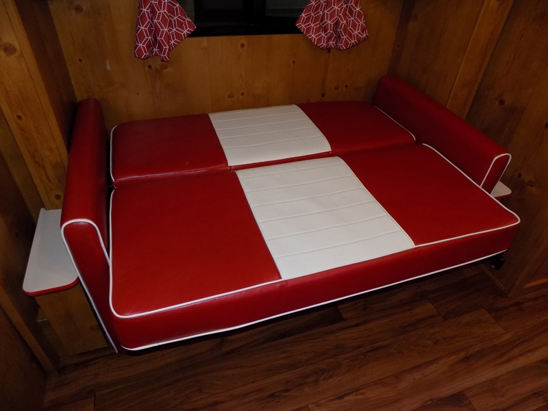 What I liked most: I like the vintage style, the red vinyl, and the knotty pine interior. I chose this model because of access to the bed on both sides, the dinette surrounded by windows, and a deep shower pan that won't leak on the floor when you bump the curtain. I also like that the toilet is not in the shower. My husband wanted 2 axels. We have the trailer 2 months and have camped 4 times. We're on a huge learning curve, but everything has worked perfectly. Our dealer, Big Country RV, Redmond, Oregon, checked everything out and gave us a walk through that was very helpful.