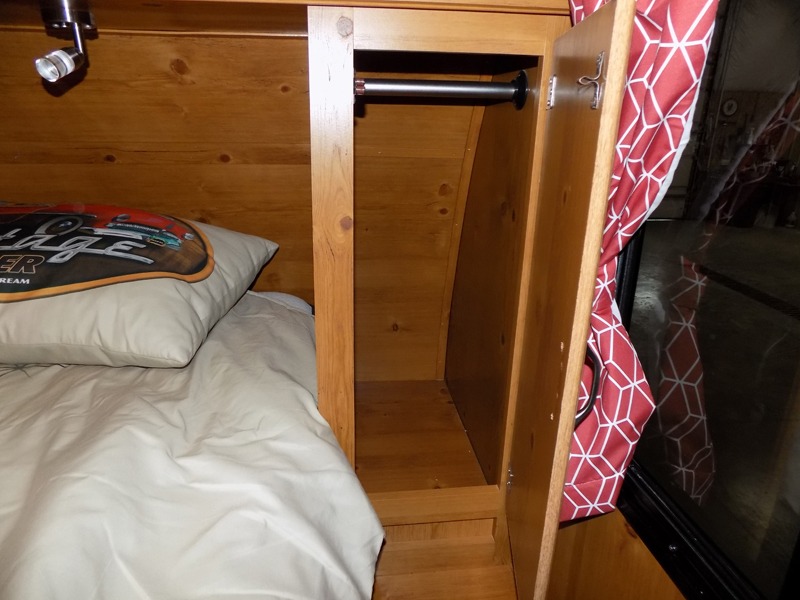 What I'd improve: The mattress is too hard to sleep on. We added a 3" foam pad, but it intrudes into the walking space around the end of the bed. It would be better if it had wood trim outside, instead of decals which were damaged in transport to the dealer. Also, we could also use a dealer in our area!9 years ago | Cherie B. from Kennewick, WA -