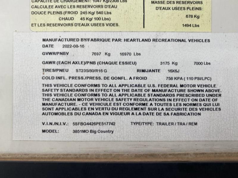 Heartland Big Country fifth wheel 3851MO highlights: