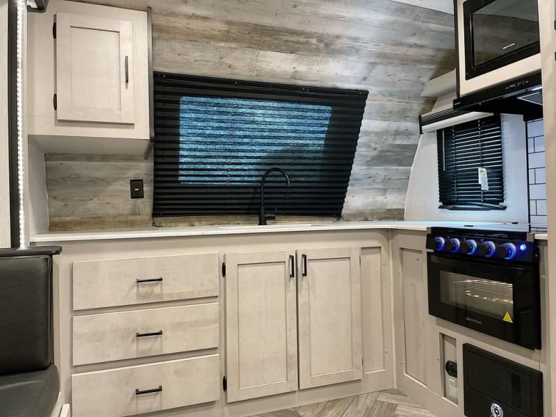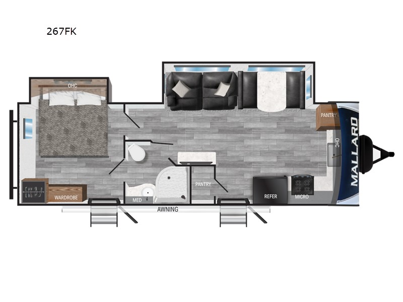 The Heartland Mallard travel trailer is quite impressive with its innovative features! The flip-down exterior steps and glow-in-the-dark graphics are some of the top exterior features, and the all-new Master Chef kitchen with Infinity edge countertops and a stainless steel undermount sink is one of the top interior features that will make camping life easier. The forced-air heated and enclosed underbelly is a great feature that protects your trailer from the outside weather, and the Wide Traxx axle system, leaf spring suspension, E-Z lube hubs, and aluminum rims all work together to give you a great ride to the campsite. The Mallard has also been prepped for a solar panel, Wi-Fi, and a back-up camera, and it also has a cable-ready hook-up.