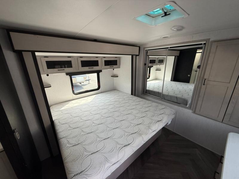 The Heartland Mallard travel trailer is quite impressive with its innovative features! The flip-down exterior steps and glow-in-the-dark graphics are some of the top exterior features, and the all-new Master Chef kitchen with Infinity edge countertops and a stainless steel undermount sink is one of the top interior features that will make camping life easier. The forced-air heated and enclosed underbelly is a great feature that protects your trailer from the outside weather, and the Wide Traxx axle system, leaf spring suspension, E-Z lube hubs, and aluminum rims all work together to give you a great ride to the campsite. The Mallard has also been prepped for a solar panel, Wi-Fi, and a back-up camera, and it also has a cable-ready hook-up.