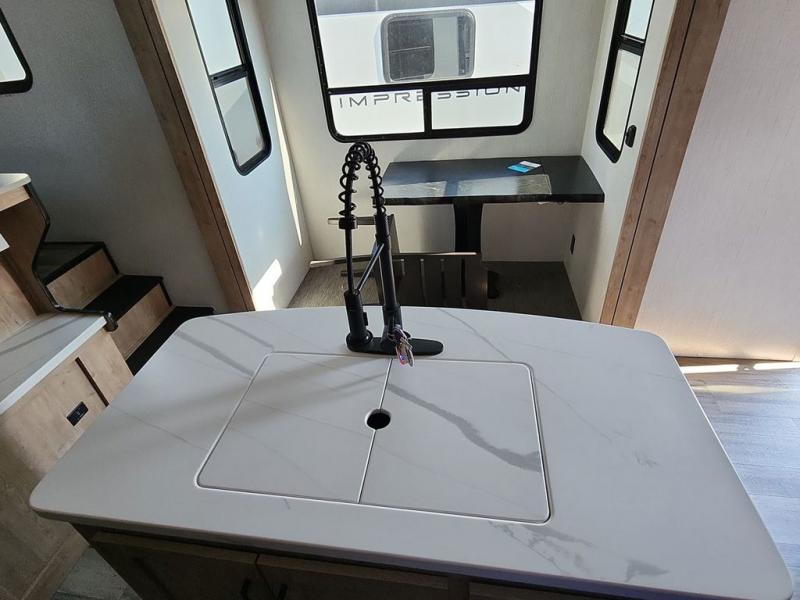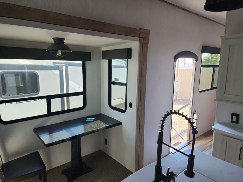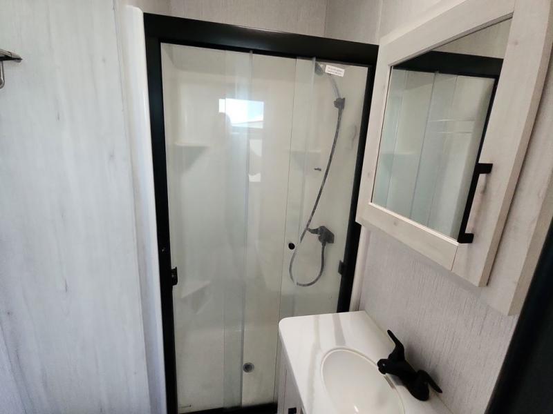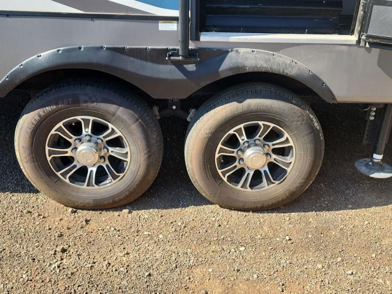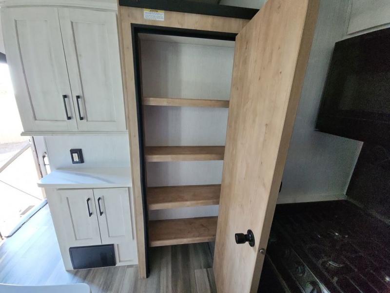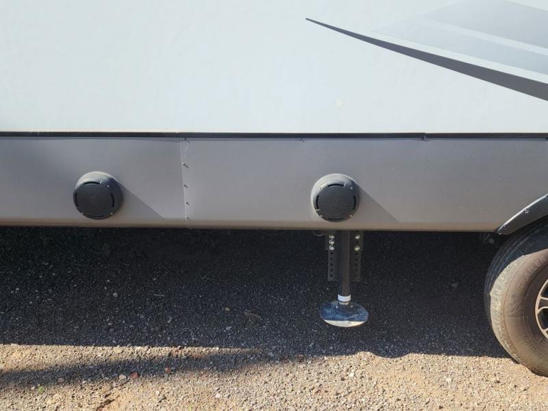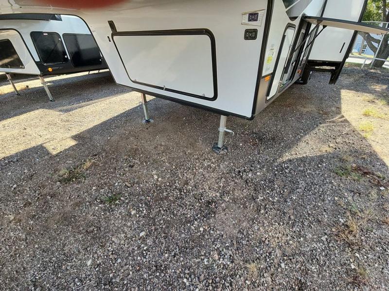 The Heartland Milestone is a full-profile luxury fifth wheel that is ready to help you make the most of your adventures! You will find an anti-chucking Rota-flex 2" receiver hitch to help you tow like a pro, and the Sol-380 with two 190 watt solar panels will let you go off-grid when the adventure calls for it. The upgraded MORryde solid step with quick-adjust system will help you enter your unit with ease, and auto-leveling comes standard to help you keep your unit secure while camping. The interior kitchen has some great features, like anti-microbial solid-surface countertops and a refrigerator with a wine cooler, and there is Wi-Fi prep with wireless charging ports throughout each unit.