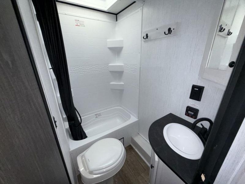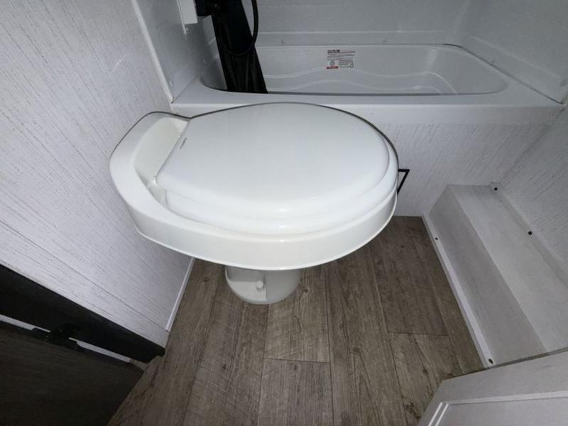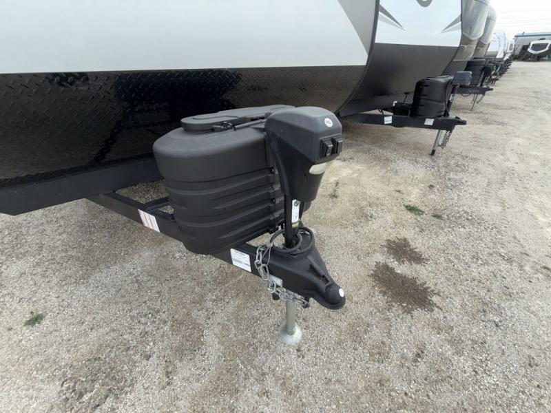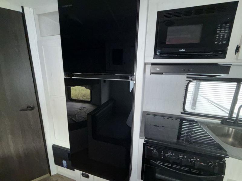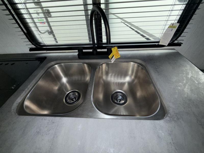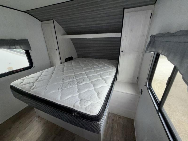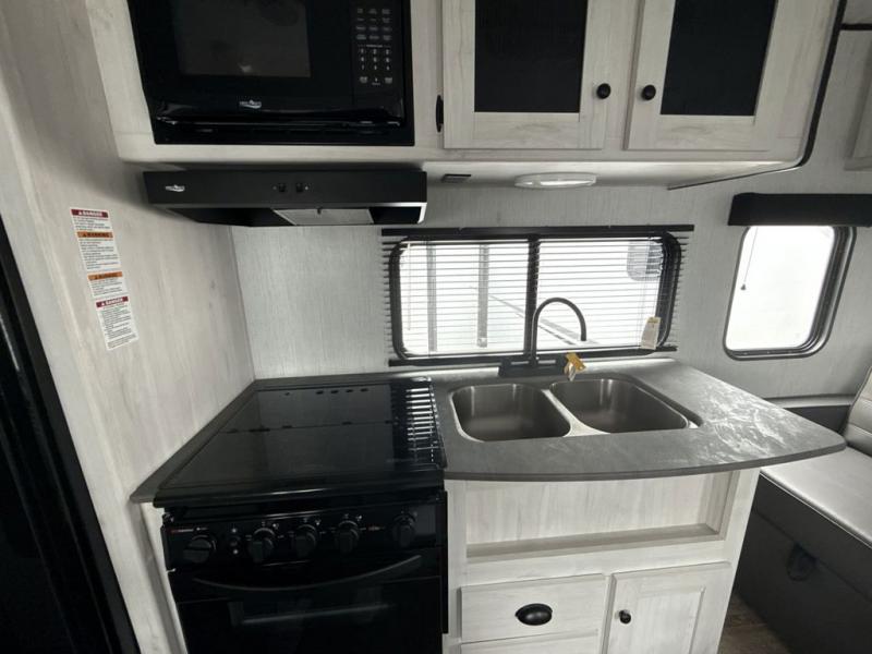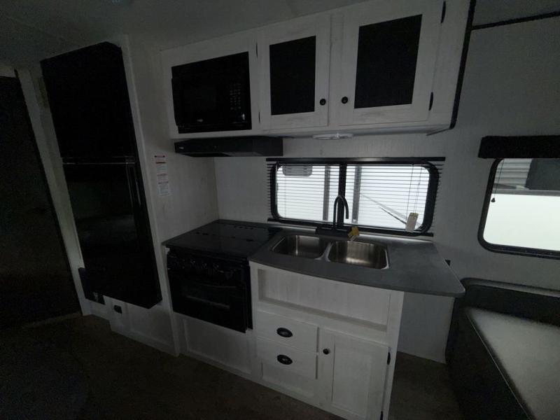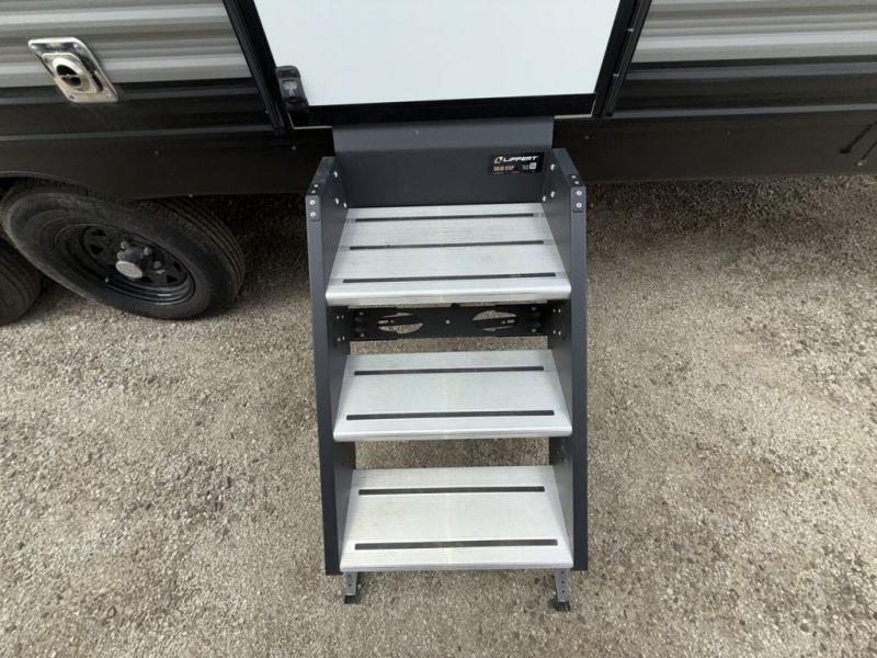 The whole family will love camping in this travel trailer! It has everything you need from a set of double bunk beds to a 14' power awning with LED light strip and outside shower. The front queen bed has under-bed storage to keep extra blankets or suitcases out of the way. After getting a good night's rest, head to the rear corner bathroom to freshen up in the ABS tub/shower surround with skylight above and then fry some eggs up on the three burner cooktop. You can enjoy your meals at the booth dinette and even convert it into an extra sleeping space, plus there is a sofa to take an afternoon nap!