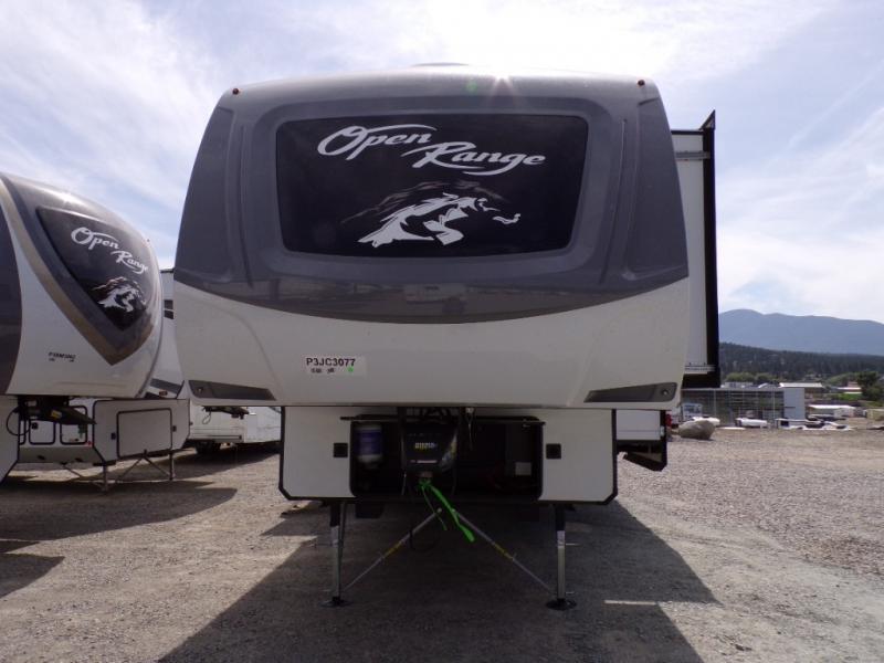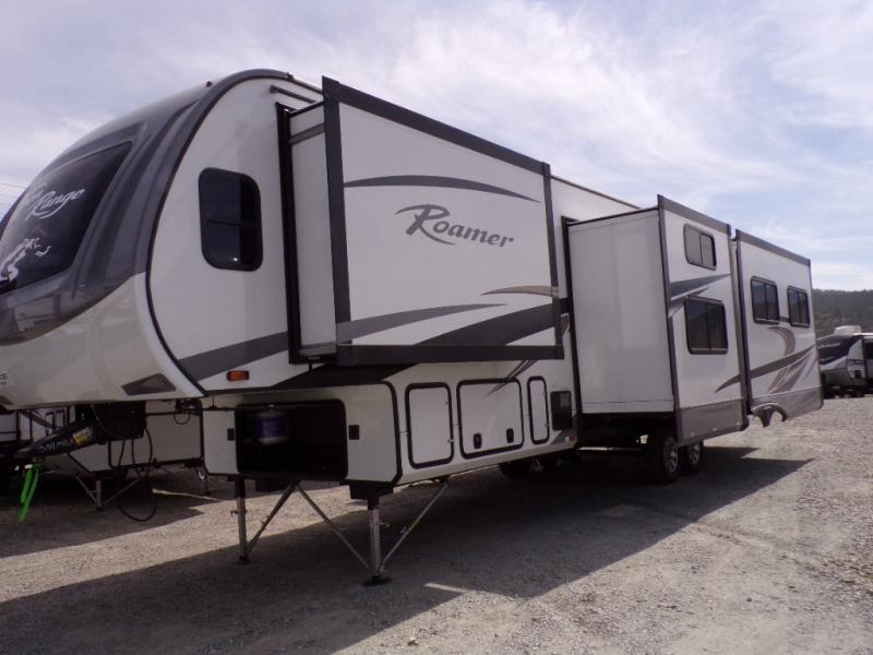 Each one of these Highland Ridge RV Roamer fifth wheels were built for the long haul! They have a TuffShell vacuum bonded laminated construction that is reinforced with heavy-duty fiberglass and welded aluminum frames, plus a PVC roofing membrane. Experience more walking around space with a 100" wide body frame and an ACCU-SLIDE slide system with a 42" deep four corner compression and are flush to the residential vinyl flooring to prevent tripping. The mandatory Four Season package lets you camp all year round with a heated and enclosed underbelly, a high performance furnace, and a R-9 block foam insulation in the sidewalls. You can control your unit at the touch of a finger with the TravelLINK smart RV system that has Bluetooth control of the awnings, lighting, slides, heating, cooling, and auto-levelers. Come find the right one for you today!