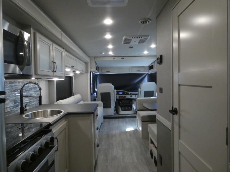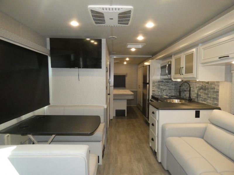 Take the grandkids or a few friends on a road trip of a lifetime with this motorhome! The Hide-A-Loft drop down electric bed is big enough for two to sleep on and the jackknife sofa can transform into a sleeping space too. There is even a rear private bedroom with a Serenity Series 72" x 75" king bed across from a wardrobe and a dresser with a LED TV. The chef can prepare their best meals either inside with the three burner cooktop or breathe in some fresh air while cooking at the exterior kitchenette. You can even watch the big game outside with the exterior entertainment center with a LED TV. Enjoy your meals at the L-shaped dinette with a LED TV next to it and freshen up in the full bathroom with the 34" x 22" shower with a skylight above for natural lighting!