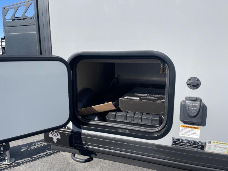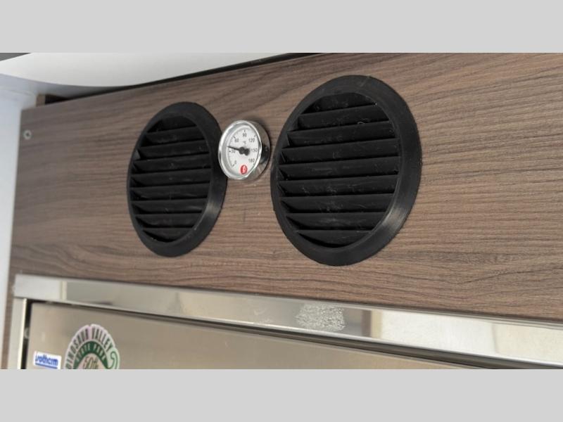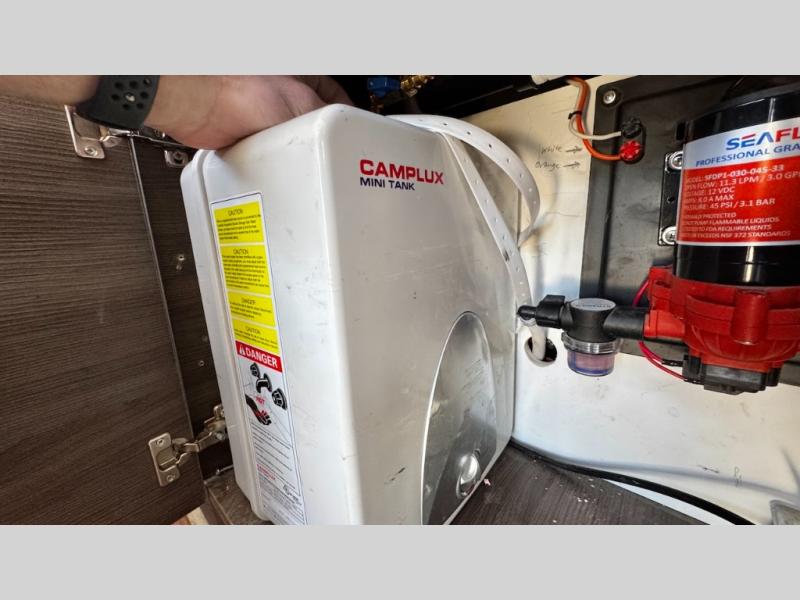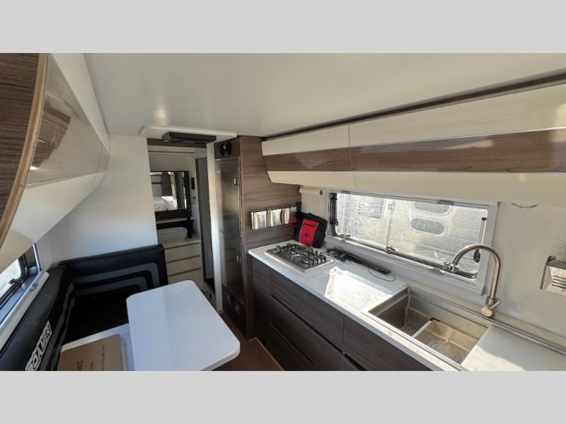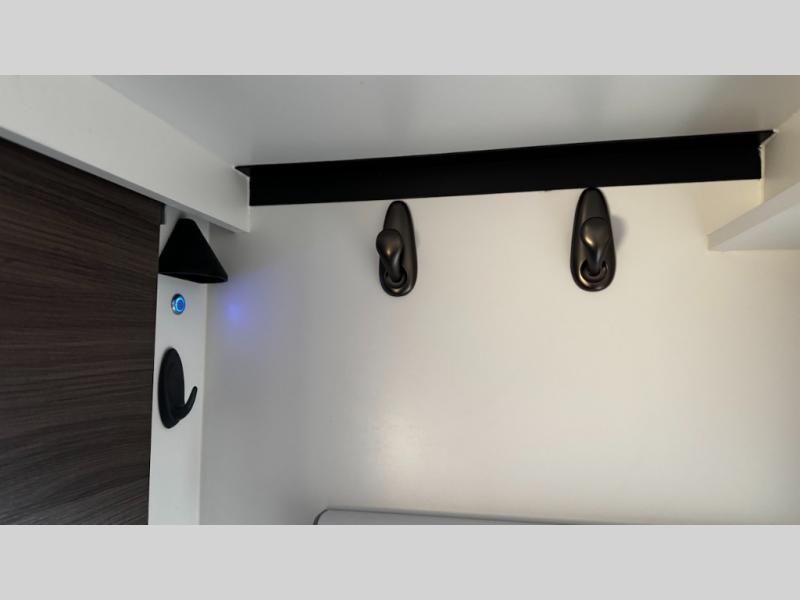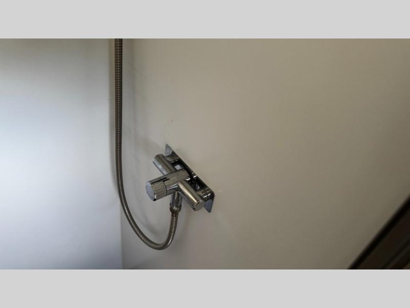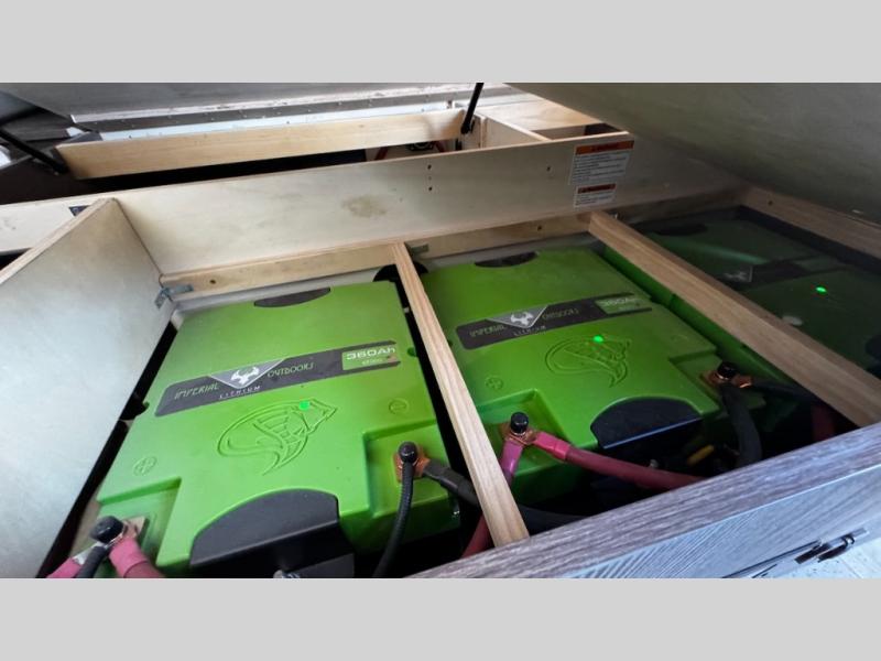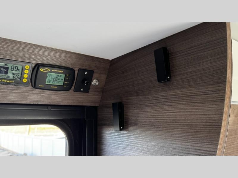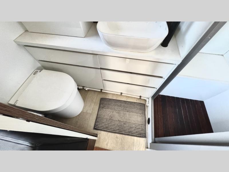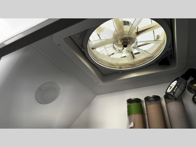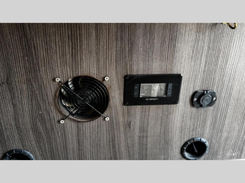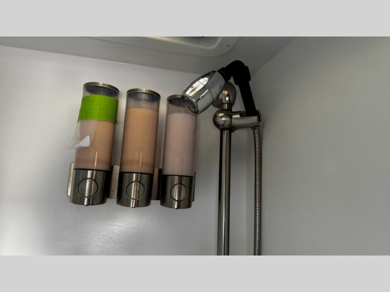 Make each camping trip count in this travel! When you get to your destination you can unload your gear from the exterior pass-through storage, then set up the 22' 6" batwing style awning. There is a full kitchen with a cooktop inside to prepare lunch on, plus a 6.9 cu. ft. refrigerator for food storage and a sink to clean up. Head out to find a trail or two, then come back to clean up in the full rear bath that includes a shower and a composting toilet, which eliminates the need for a black tank. The full size walk-around bed (RV full) will provide a great night's rest, and there is overhead storage space on each side of the bed for convenience.
