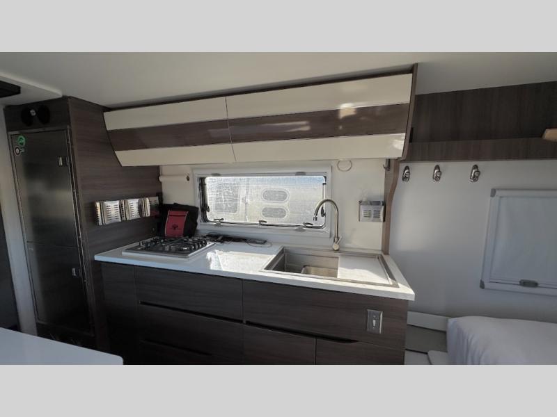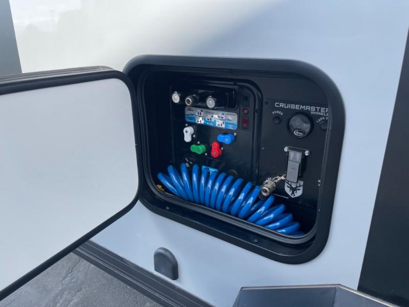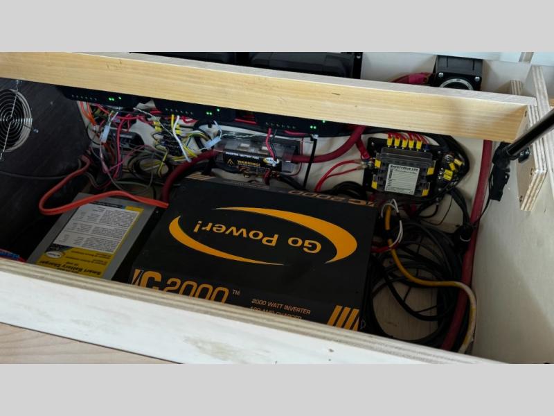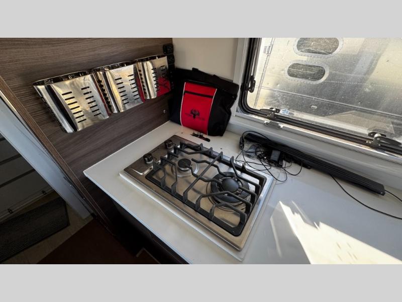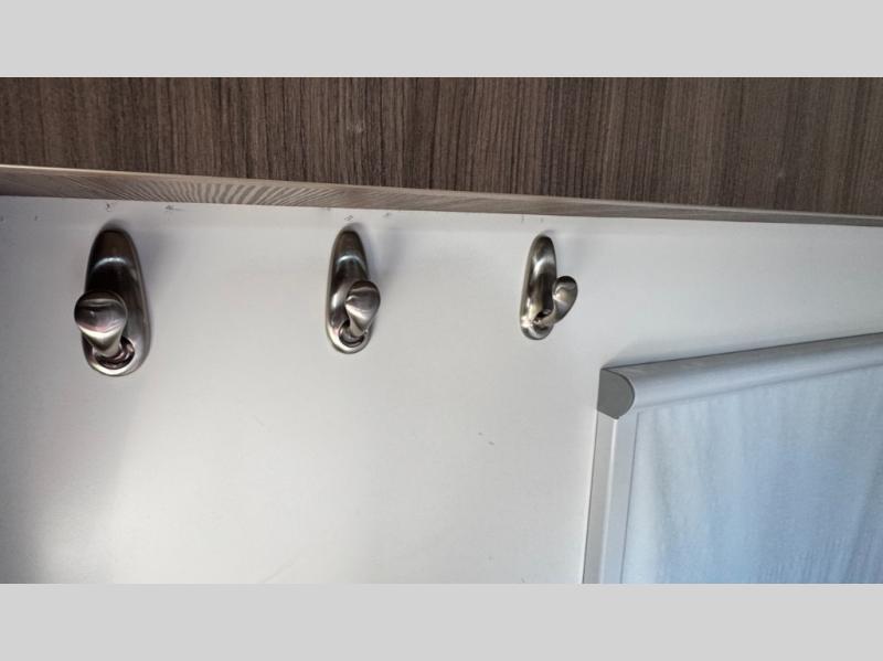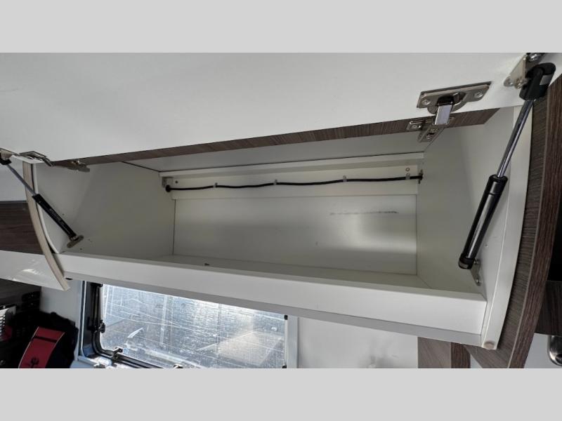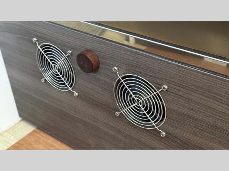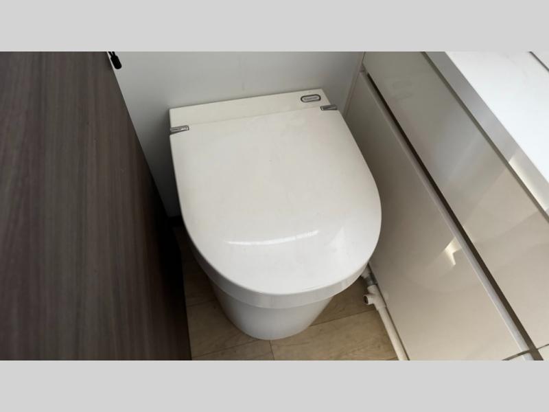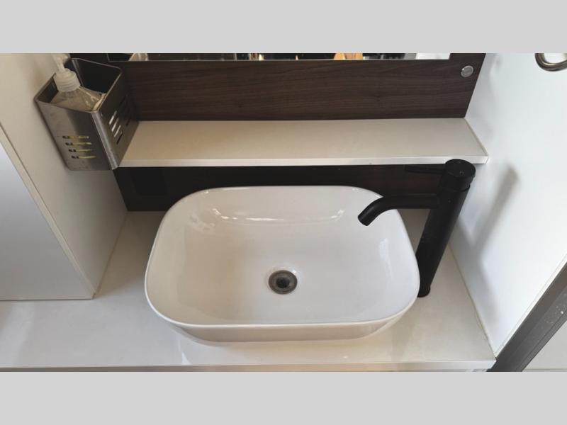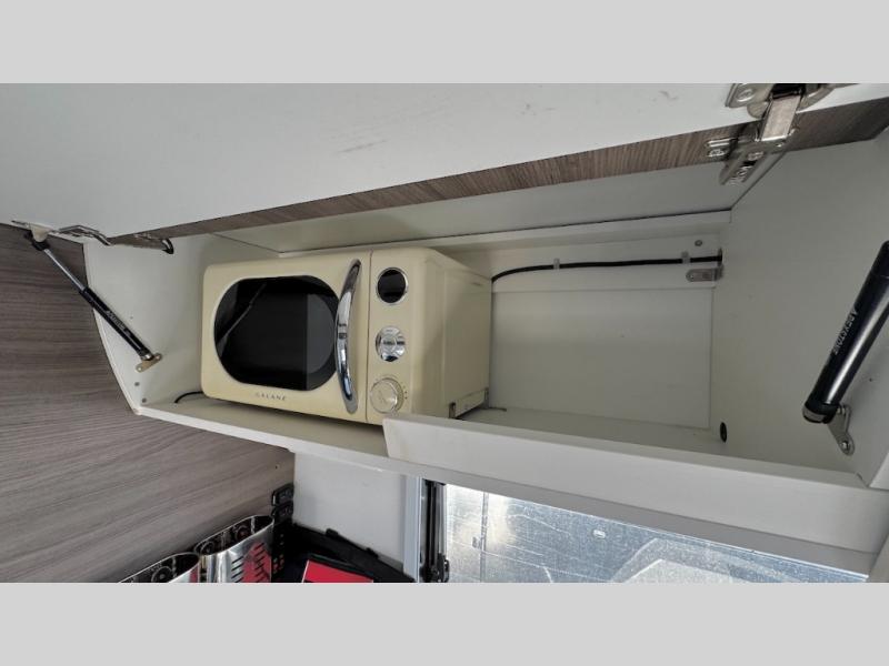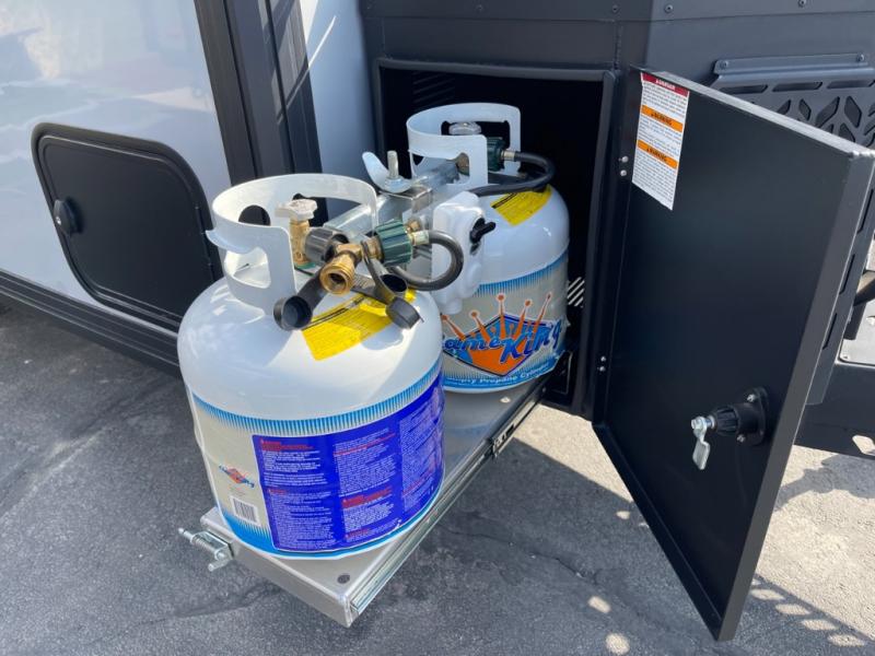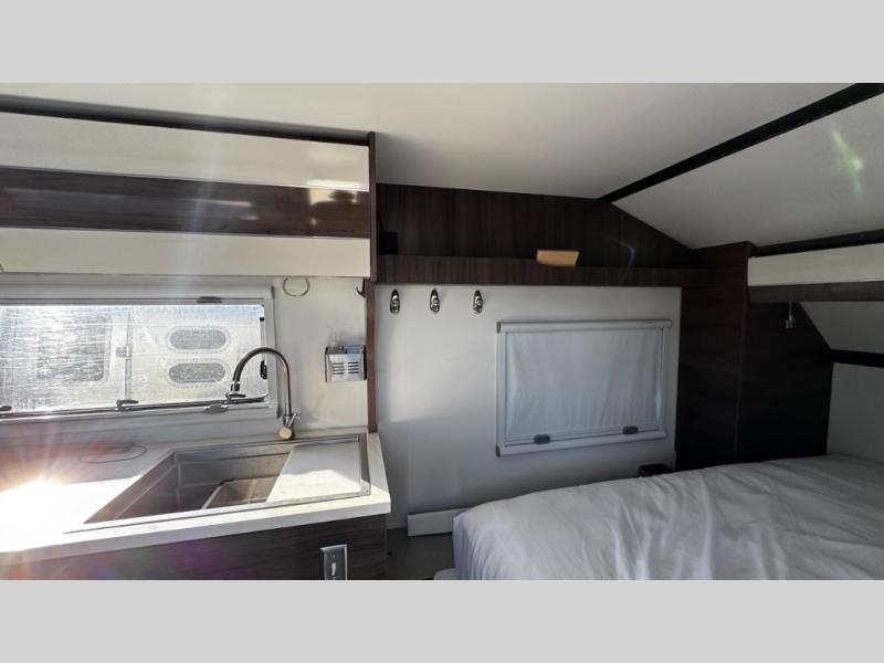 Make each camping trip count in this travel! When you get to your destination you can unload your gear from the exterior pass-through storage, then set up the 22' 6" batwing style awning. There is a full kitchen with a cooktop inside to prepare lunch on, plus a 6.9 cu. ft. refrigerator for food storage and a sink to clean up. Head out to find a trail or two, then come back to clean up in the full rear bath that includes a shower and a composting toilet, which eliminates the need for a black tank. The full size walk-around bed (RV full) will provide a great night's rest, and there is overhead storage space on each side of the bed for convenience.