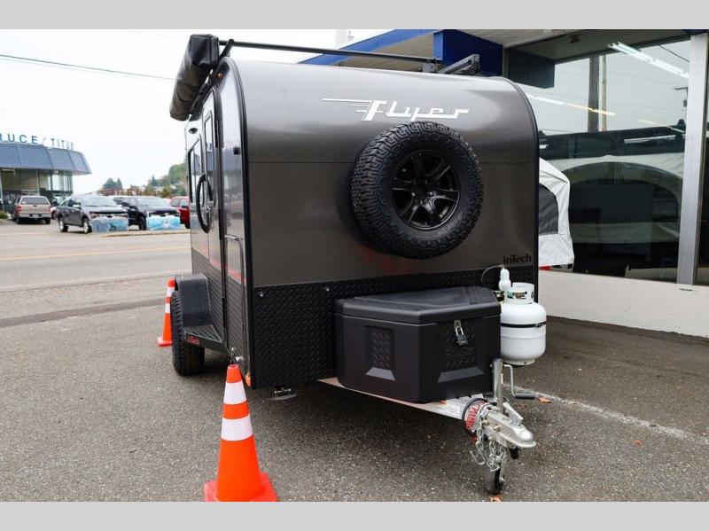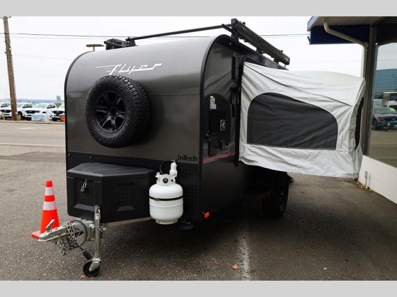 All inTech RV Flyer models feature an all-aluminum, all-tube cage frame providing a lifetime of enjoyment! Whether you camp by yourselves or with other outdoor enthusiasts, or you like to adventure with an off-road toy in the mix, there is a Flyer model just perfect for your kind of fun. Each Flyer unit offers 30 AMP power, black coin or infinity woven flooring, prep for solar power, and full insulation. Optional items are available allowing you to custom design your particular unit, such as adding an air conditioner, a Sunseeker or Batwing awning, a roof rack, and more, depending on the model you choose. Choose your favorite model today!