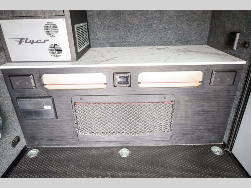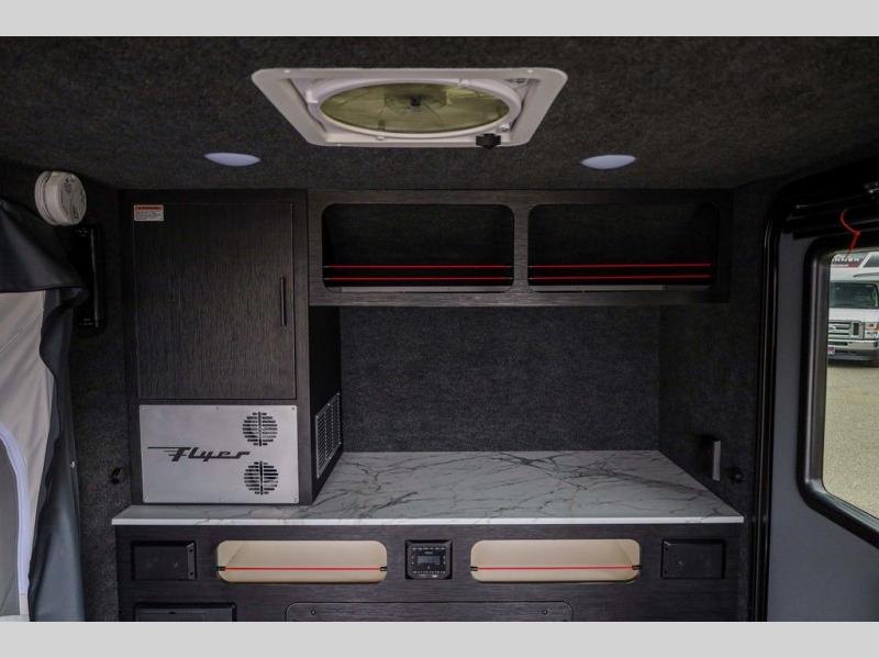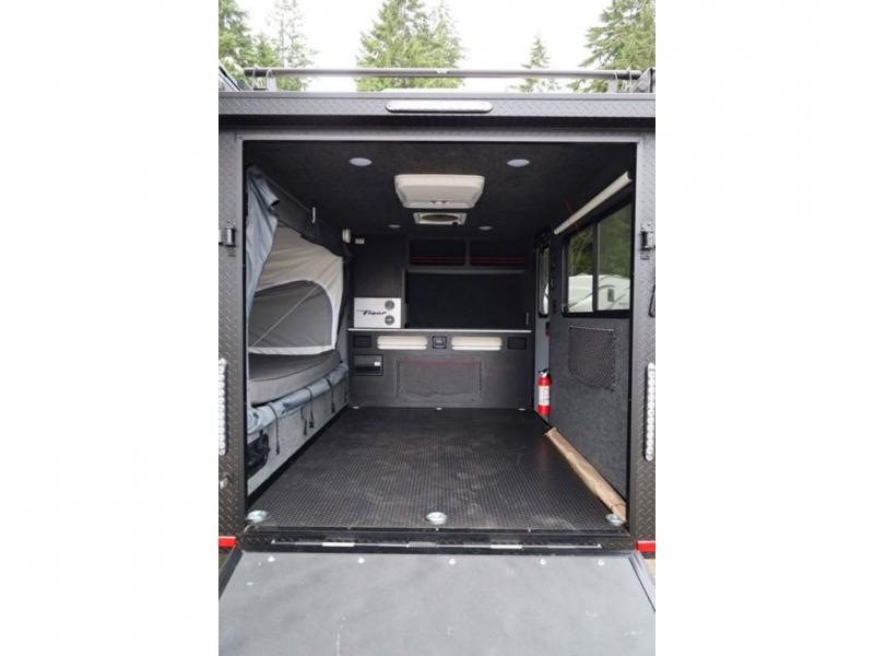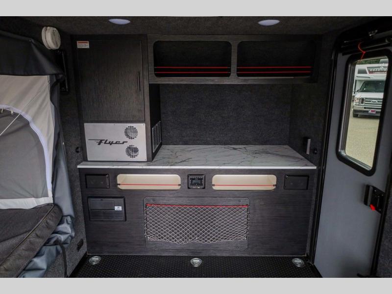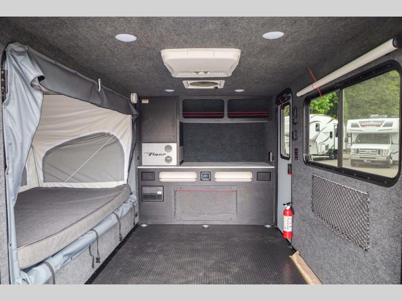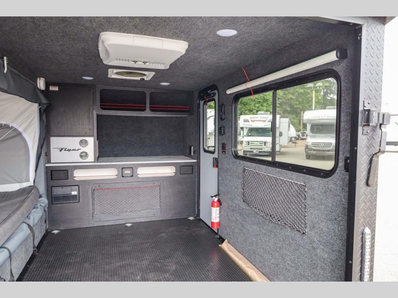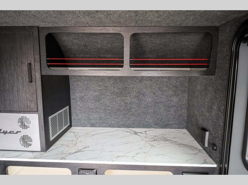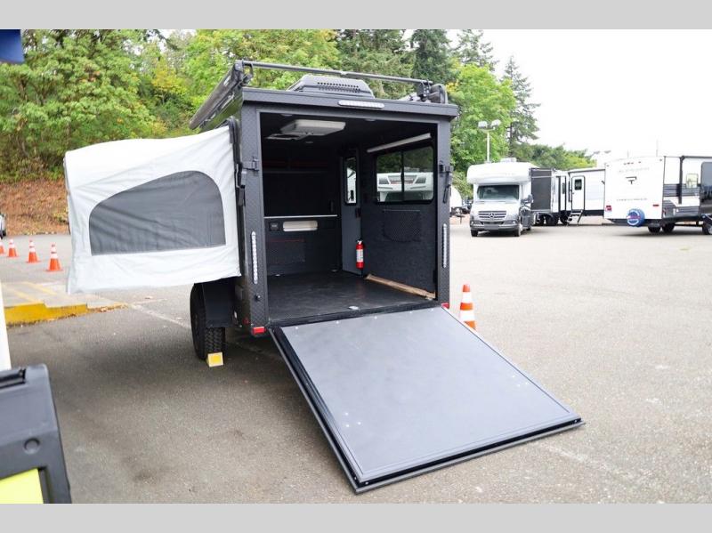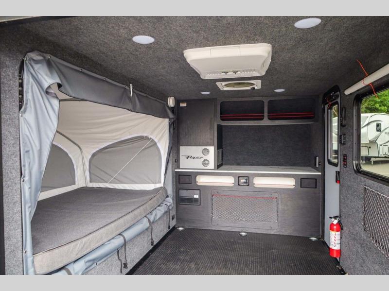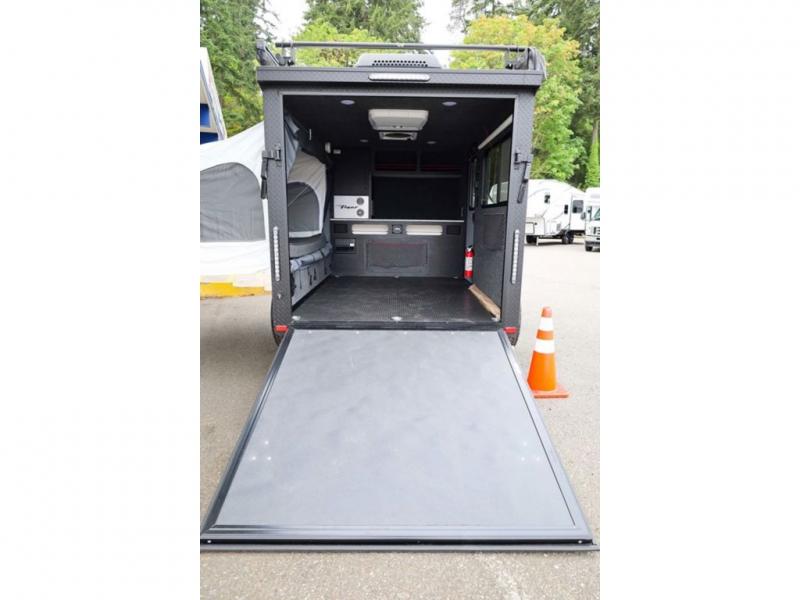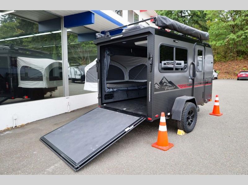 Load up your off-road toys in this Flyer Explore micro-lite toy hauler with six tie-down rings to keep everything secure while moving down the road. Once you have arrived at your destination, the rear ramp door will make loading and unloading super easy, and you have the ability to expand this Flyer model to fit your needs. The optional tip-out bed on either side of the trailer provides a comfortable place to sleep and increases your interior footprint. If you choose the optional kitchen slide out with 12V refrigerator, you can easily whip up meals and snacks in the great outdoors!