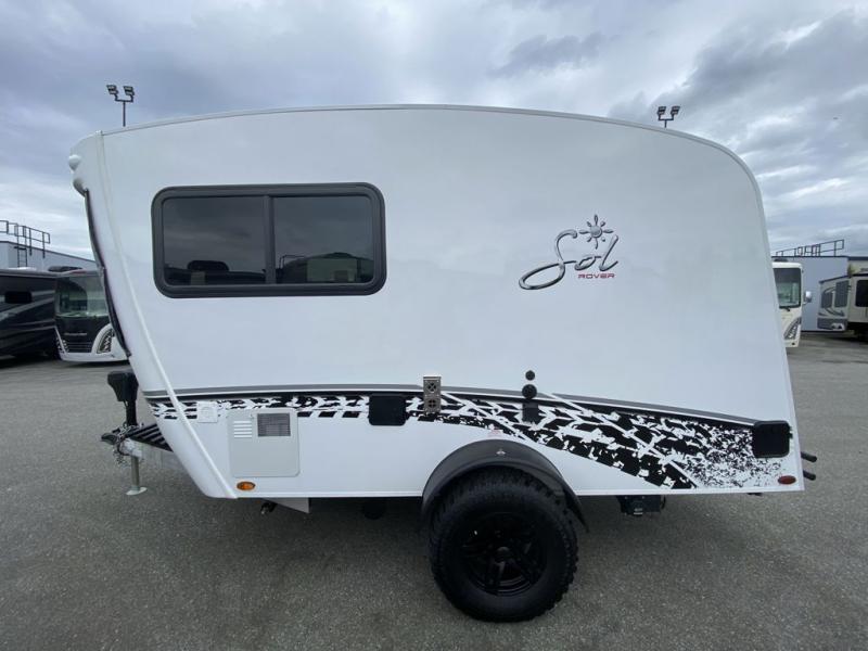 With any Sol travel trailer by inTech RV you will find strong, durable construction consisting of lightweight aluminum that is easier to tow and resists rust, water, and dents. The Tilt-Forward Design creates more space inside so you can stretch out, and the panoramic windshield gives a great view of the mountains, ocean, or forest! The elegant interior features tinted windows with shades, Infinity woven flooring, and a stainless steel cooktop and microwave. You will stay comfortable year around since these models include a 13.5 BTU A/C and a 16K BTU furnace. The optional Rover Package can also be added that features rugged decals, off-road tires with a 3" lift, two different color choices to choose from, plus more!