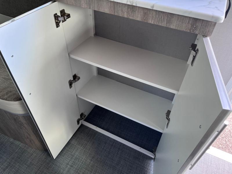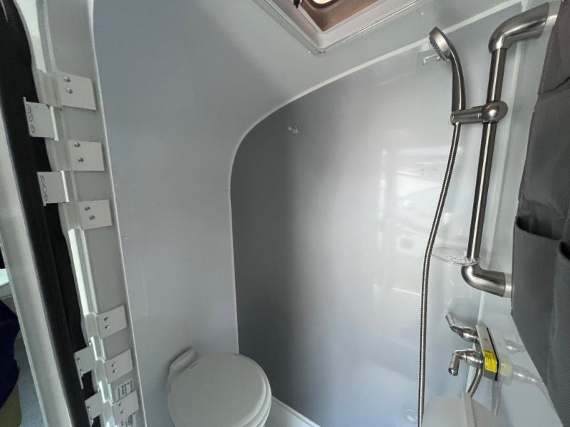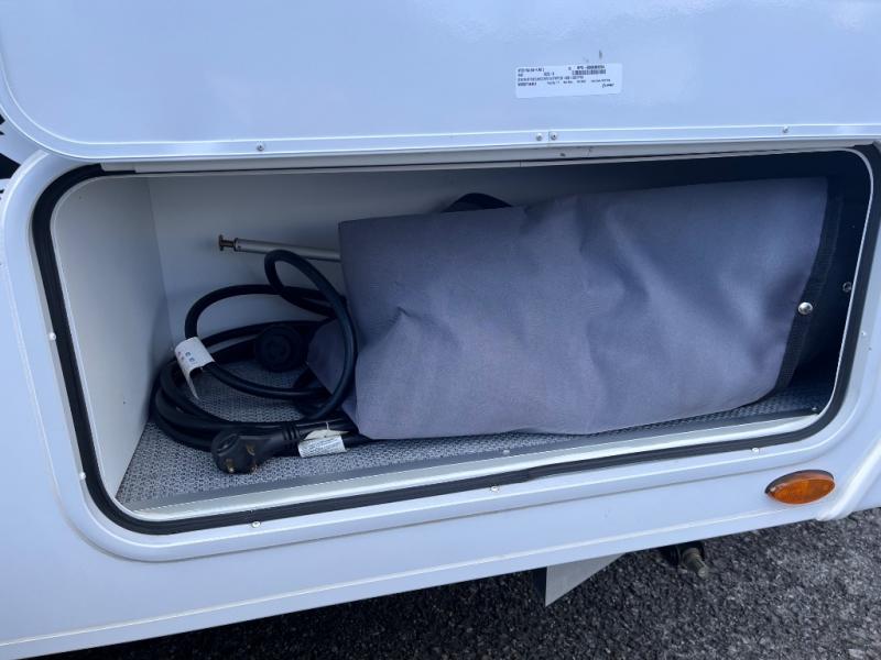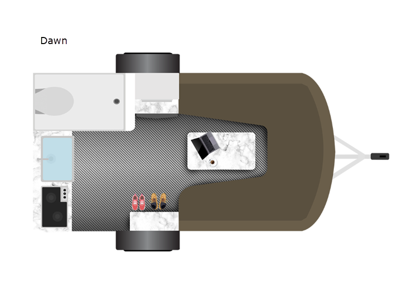 Make each adventure count with this Sol travel trailer. You and your loved one will have a convertible dinette to enjoy meals at and sleep on at night. In the morning, prepare eggs and bacon on the two burner stainless steel cooktop before heading out for the day. If you've chosen the optional 7' awning, you may not wander off too far from your trailer. This model also includes a wet bath with a porcelain toilet, a roof vent, plus a mesh shower storage net with two towel hooks for your convenience. This model also has a dry weight that ranges from 2,650-2,731 lbs., a tongue weight between 280-310 lbs., and a carrying capacity between 805-910 lbs.
