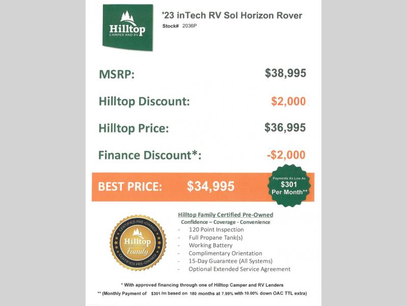 Used 2023 inTech RV Sol Horizon Rover Travel Trailer