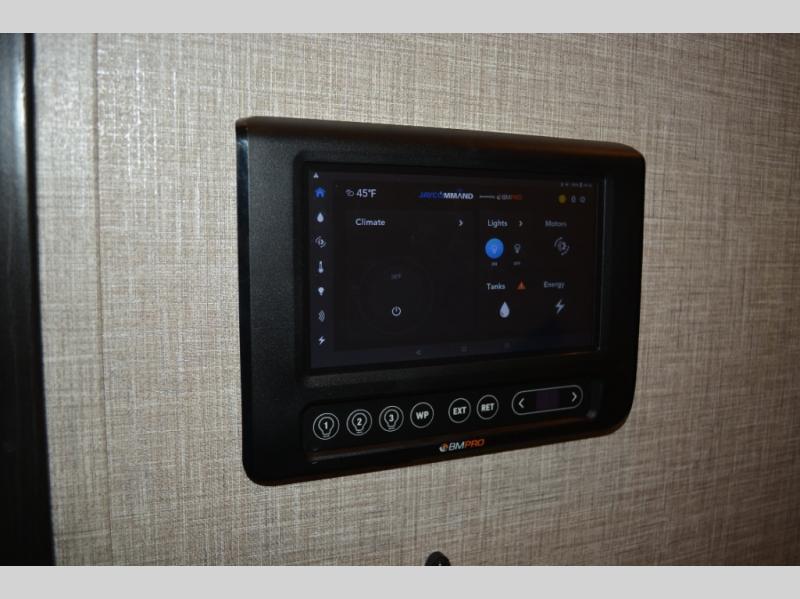 The Jayco Eagle HT fifth wheels and travel trailers include many features to make camping easier than ever! They are lightweight, making them easy to tow, and the JAYCOMMAND "Smart RV" system lets you control your RV's functions from a tablet or smartphone! Each model is constructed with Stronghold VBL lamination, the lightest, yet strongest in the industry, along with a durable Magnum Truss roof system that can withstand 4,500 lbs. The 4 Star Handling Package includes Goodyear Endurance tires, Dexter axles with Nev-R-Adjust brakes and E-Z lube hubs, and a MORryde CRE-3000 rubberized suspension for hassle-free towing. Head inside to find handcrafted and glazed doors, drawers, and trim, residential vinyl flooring, blackout roller shades, plus many more at-home comforts. These models are also pre-wired for an inverter and you can add the optional solar packages to enjoy off-grid camping when the adventure calls for it!