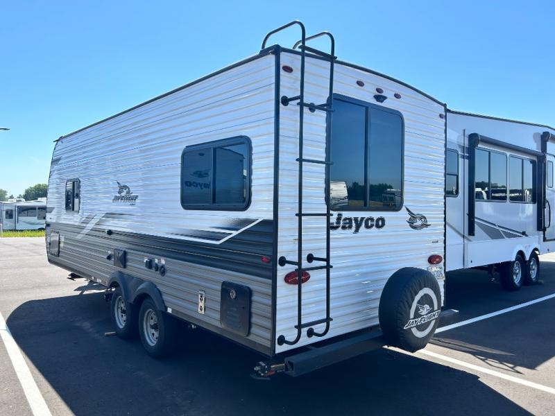 These Jayco Jay Flight travel trailers have been a family favorite for years with their lasting power and superior construction. An integrated A-frame and magnum truss roof system holds them together. When you tow one of these units you're towing the entire unit and not just the frame. With dark tinted windows, you have more privacy and safety. The vinyl flooring throughout will be easy to clean and maintain too. Come find your favorite model today!