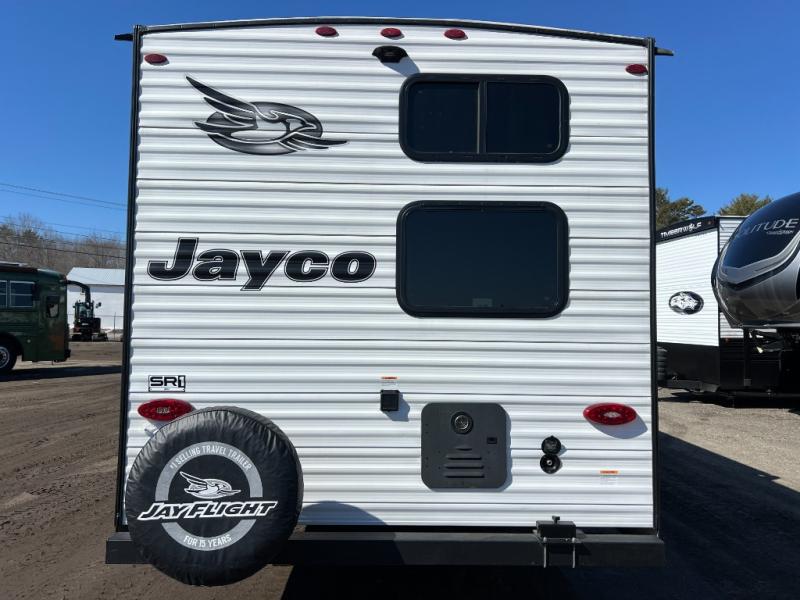 These Jayco Jay Flight travel trailers have been a family favorite for years with their lasting power and superior construction. An integrated A-frame and magnum truss roof system holds them together. When you tow one of these units you're towing the entire unit and not just the frame. With dark tinted windows, you have more privacy and safety. The vinyl flooring throughout will be easy to clean and maintain too. Come find your favorite model today!