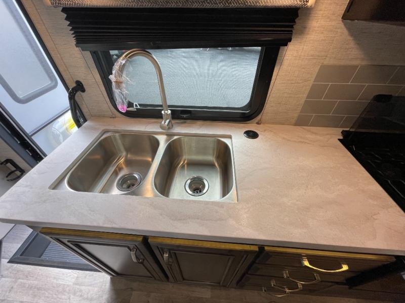Each Jayco Redhawk Class C gas motorhome includes the JRIDE® system that features a computer-balanced driveshaft, standard front and rear stabilizer bars, Hellwig helper springs, and rubber isolation body mounts to absorb road shock, dampen noise and minimize vibrations. The cab offers a Sony® infotainment center with Apple CarPlay and Android Auto, backup and side-view cameras for safety and easier parking, and a tire pressure monitoring system. inside you will love the headroom with a 7-foot ceiling height, the LED-lit pressed countertops and decorative kitchen backsplash, plus the stainless steel bathroom sink when it is time to clean up. Looking for value, technology and comfort, choose your favorite Redhawk today!