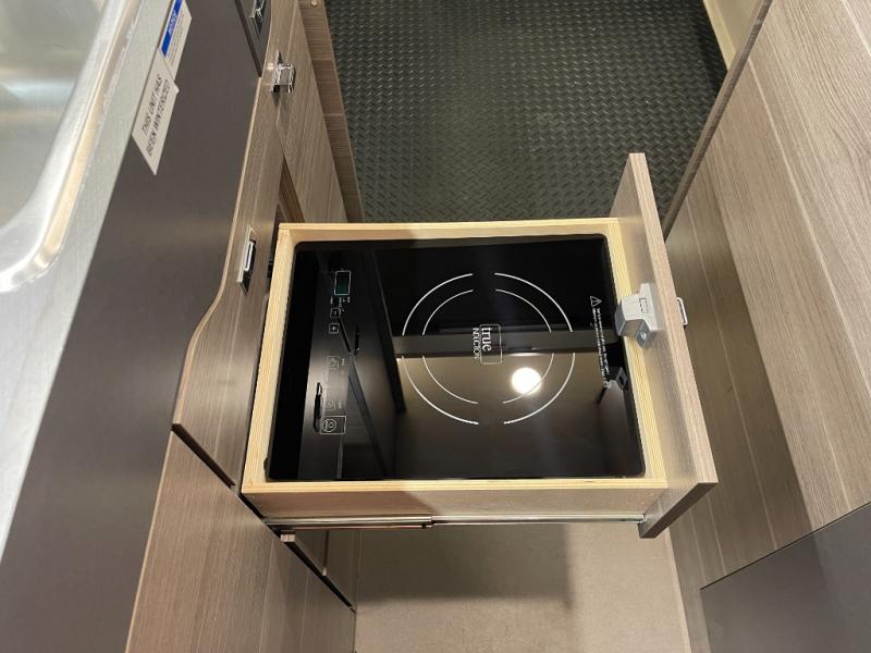 Take some time to get away with your favorite person in this Terrain Class B diesel motorhome! Not only is there room to sleep two with the power lift bed that has a 750-LB capacity, but there is also room to seat a total of four people on the two heated power swivel cab seats and the additional two bucket seats with slide and recline features in front of the collapsible dinette table. You'll have some more repositionable features in the kitchen with the Tecnoform pull-out kitchen countertop extension and the pantry with Tecnoform pull-out extension, and the wet bath is very functional with its removable wood shelves, powered roof vent, and retractable clothes line.