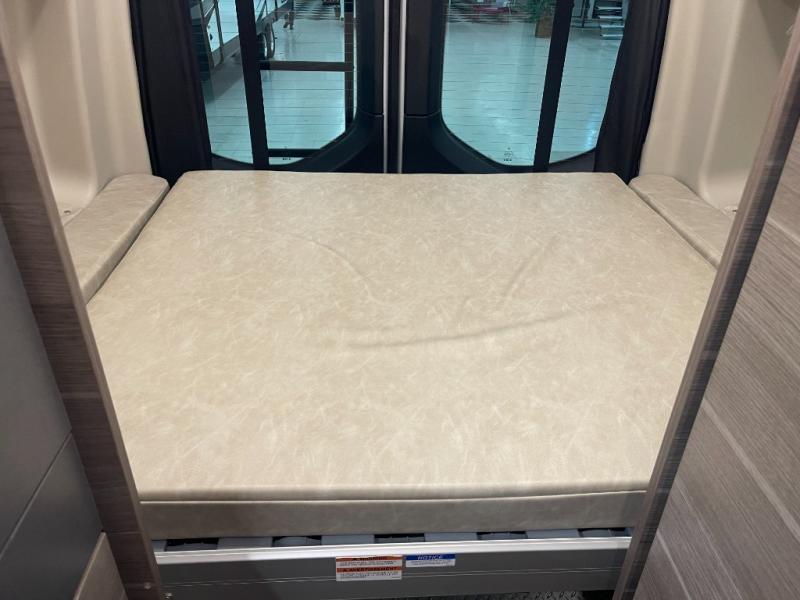 The Jayco Terrain Class B diesel motorhome is just waiting for you to hit the trails with it! These coaches were built to be tough, durable, and ready for adventure with their four-wheel drive, JRIDE handling system with Koni® shocks and heavy-duty rear stabilizer bar, front and rear wind deflectors with front LED light bar, black aluminum wheels with BFGoodrich® all-terrain T/A® KO2® tires, and 200W roof-mounted solar panels. You'll notice that you have extra storage space with the rear garage, L-track mounts, and two recessed storage bags under the bed, and the two sliding vented windows and rear dual-pane acrylic window with cassette shades bring in natural light. The durable rubber flooring is the perfect base for the interior, and the BOSS® dual-zone radio with Bluetooth is undeniably fantastic.