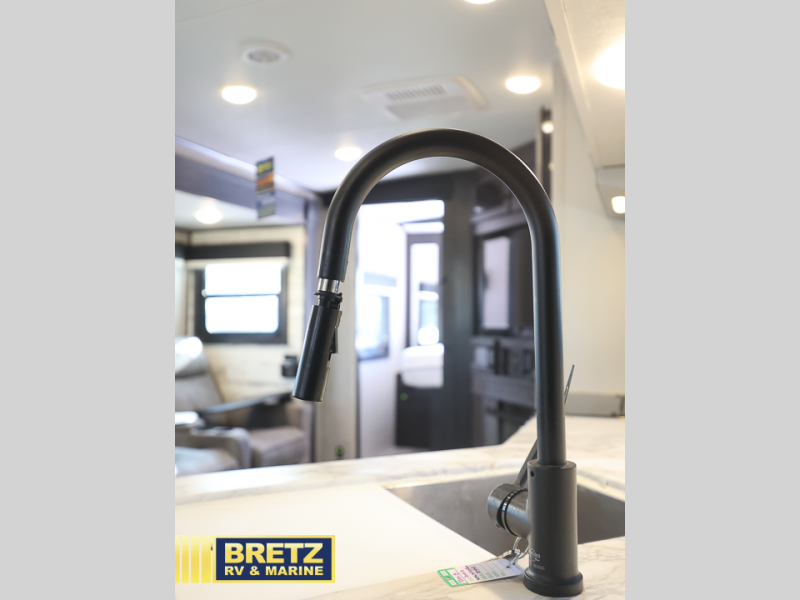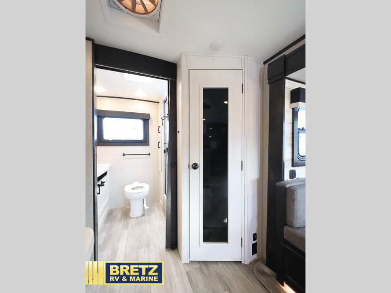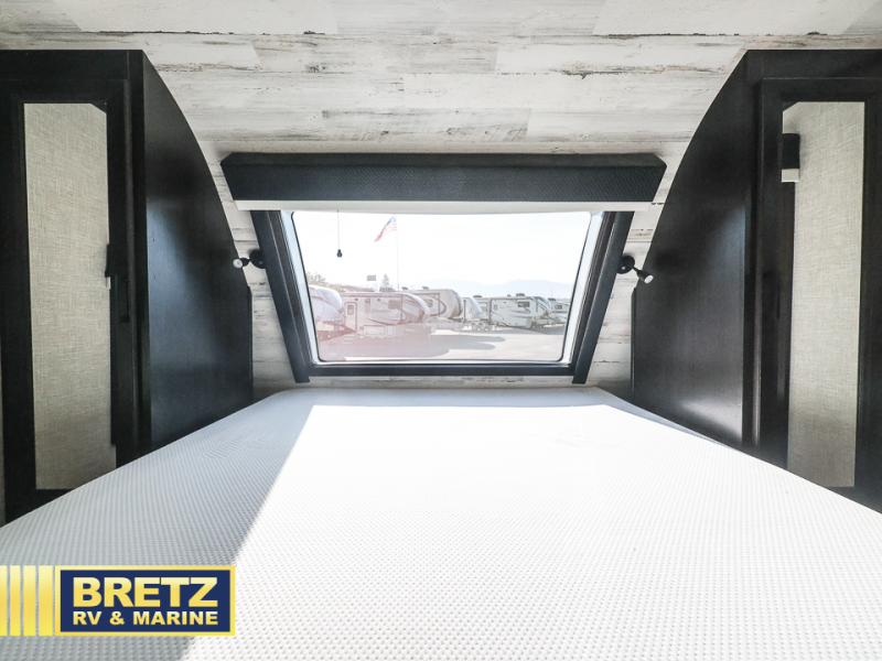 Your family will love camping every other weekend in this spacious travel trailer. The full rear bath is tucked away in the back for privacy, and there are dual entry doors for convenience. When you're not outside cooking on the outdoor kitchen, gather around the U-shaped dinette for game night. You'll find the LED TV and fireplace will make this area feel more like home, and there are two pantries to store snacks and dry goods. When it comes time to call it a night, head to the front private bedroom for a great night's rest on the queen bed, and you'll find two wardrobes plus a closet to keep your clothes tidy.