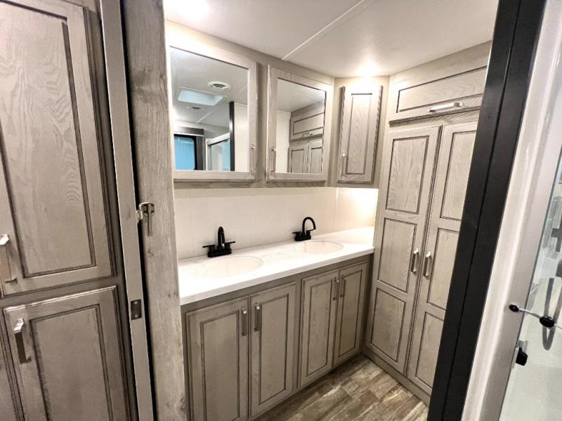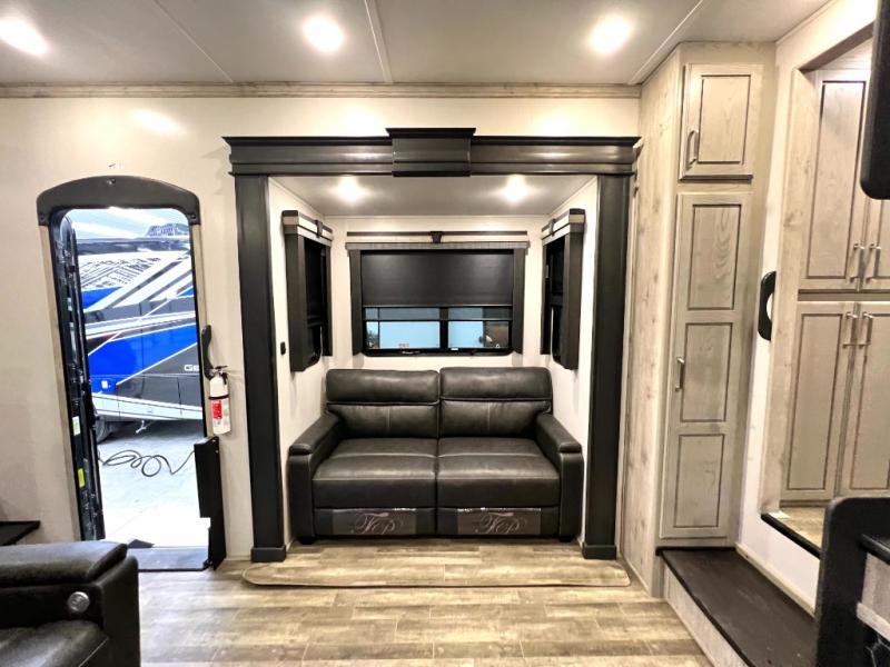 The 2023 Keystone Alpine 3790FK is a luxury fifth wheel built for RVers who want residential comfort and high-end features on the road. With its unique front kitchen design and spacious living areas, the Alpine 3790FK is perfect for extended stays or full-time RV living.