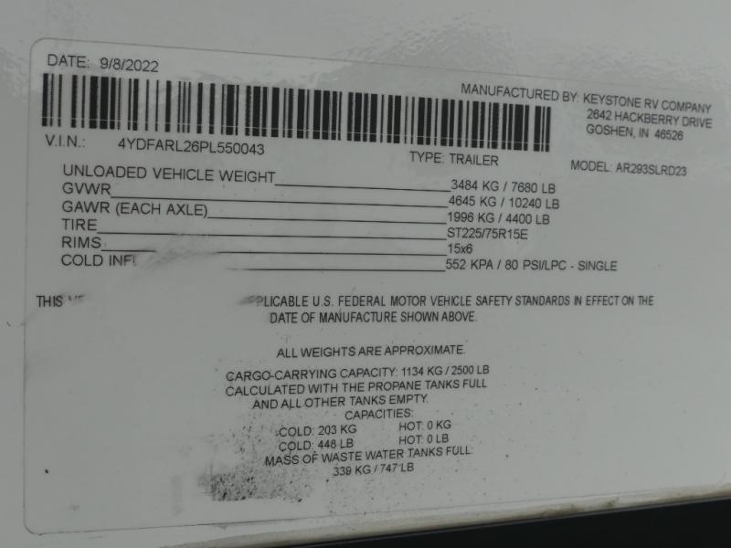 | VIN | 4YDFARL26PL550043 |