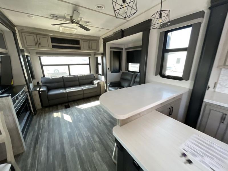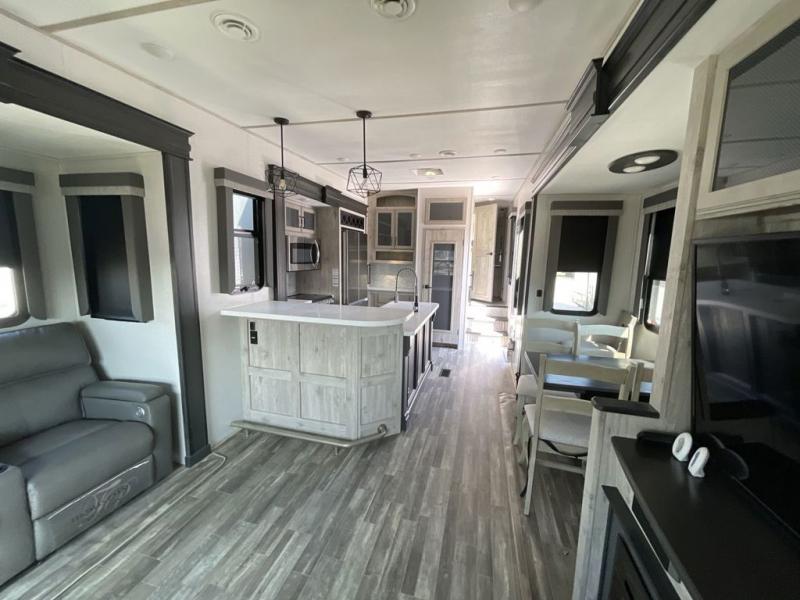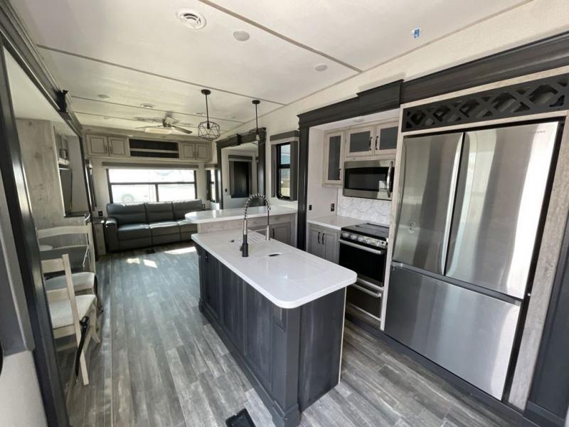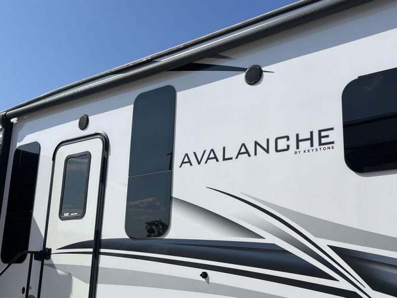 With any Keystone luxury full-profile Avalanche fifth wheel, you will experience wide-body construction that allows you to stretch out and stay awhile during any season thanks to the Polar Pack All Season Protection that includes a heated and enclosed underbelly, an Astro foil reflective layer on the roof, front and rear walls, and two static attic vents, plus more! The interior offers hardwood slide out fascia with wood accents, crown molding, plus your choice of modern interior design. There are many more Keystone exclusives, like the Tru-Fit slide construction, the in-floor heating ducts, the 4G LTE and Wi-Fi prep, and much more to bring you a full-packed, luxury fifth wheel!
