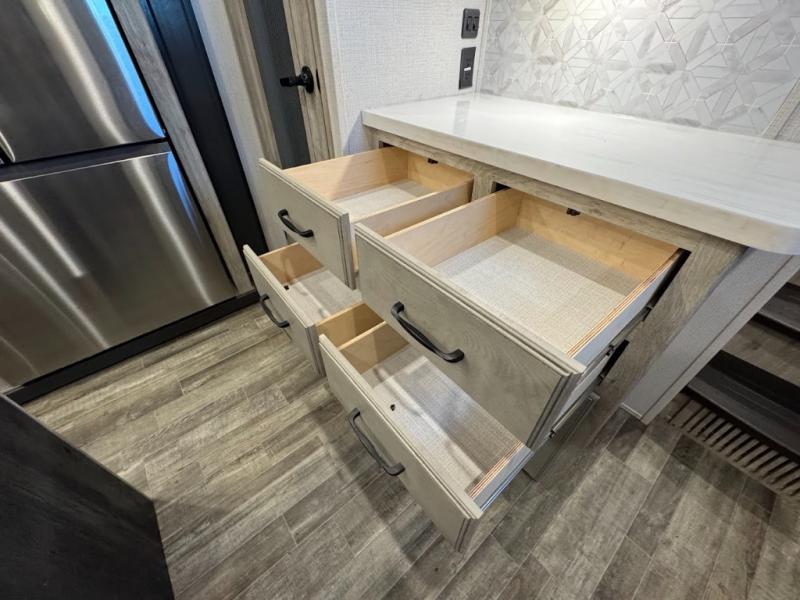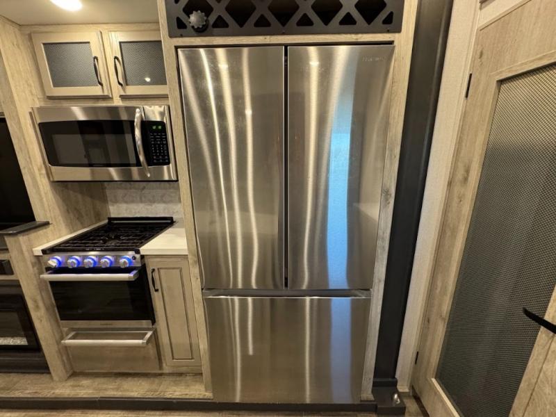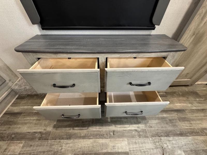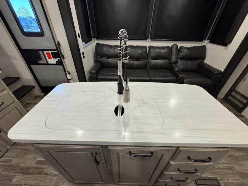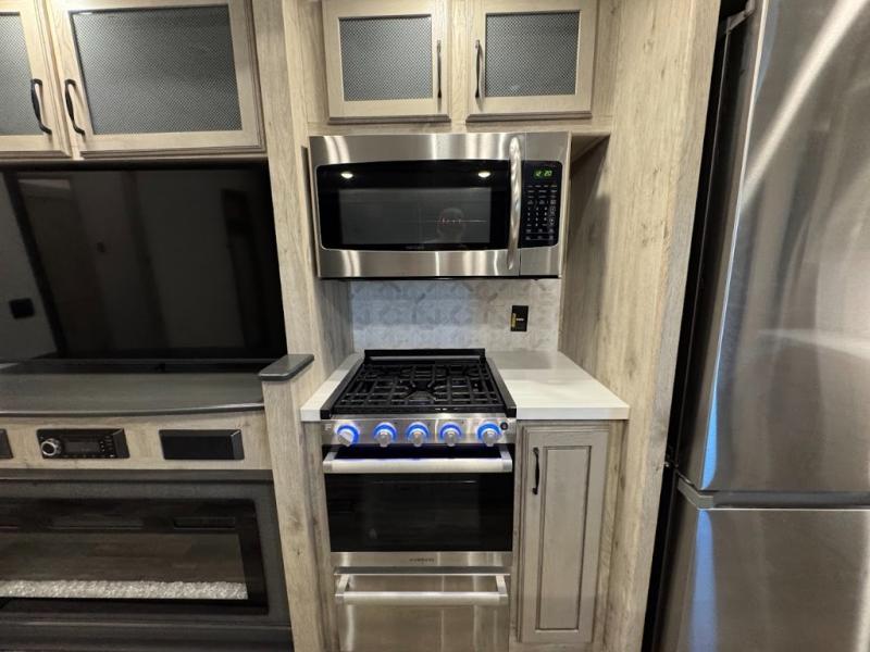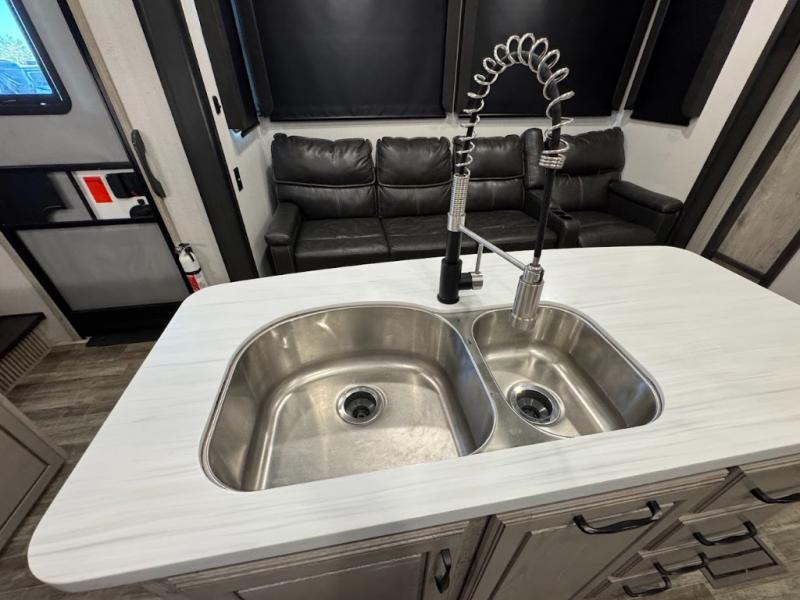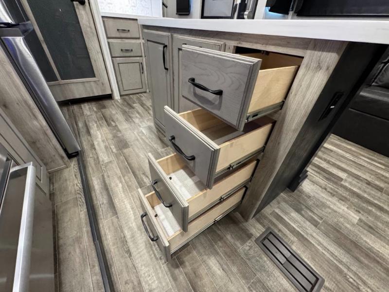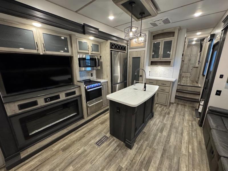 With any Keystone luxury full-profile Avalanche fifth wheel, you will experience wide-body construction that allows you to stretch out and stay awhile during any season thanks to the Polar Pack All Season Protection that includes a heated and enclosed underbelly, an Astro foil reflective layer on the roof, front and rear walls, and two static attic vents, plus more! The interior offers hardwood slide out fascia with wood accents, crown molding, plus your choice of modern interior design. There are many more Keystone exclusives, like the Tru-Fit slide construction, the in-floor heating ducts, the 4G LTE and Wi-Fi prep, and much more to bring you a full-packed, luxury fifth wheel!