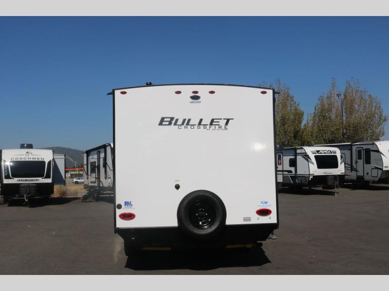 Each Bullet Crossfire by Keystone is constructed with a NORCO HSLA steel/automotive deposition coated frame assembled with huck bolts for durability. The one-piece ABS enclosed underbelly will help extend your camping season, and the Dexter E-Z Lube axles will provide smooth towing from home to campground. Setting up your trailer will be a breeze with the electric tongue jack and four electric stabilizer jacks, and there is an electric awning with adjustable arms and LED lighting for an inviting outdoor living space. The affordable, high-quality RV solar energy system, SolarFlex 200 comes standard with each model and will allow you to go off-grid when you want. Inside, you'll find fabric night shades, Beauflor with woven flooring in the slides, full depth cabinets with full extension drawer guides, and many more comforts.