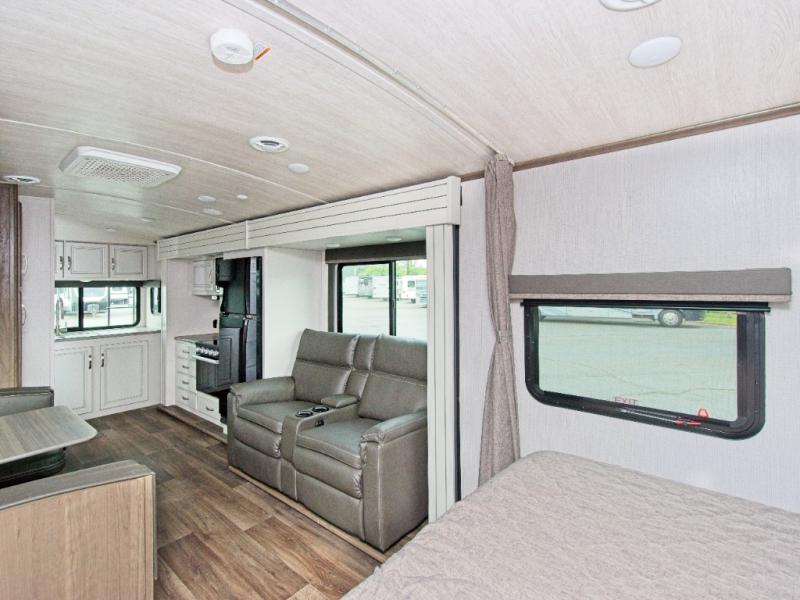 Discover the Keystone Cougar Half-Ton travel trailer, featuring a luxurious king-size bed and advanced Climate Guard protection for ultimate comfort and safety on the road.