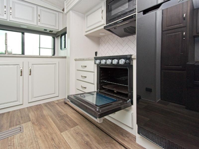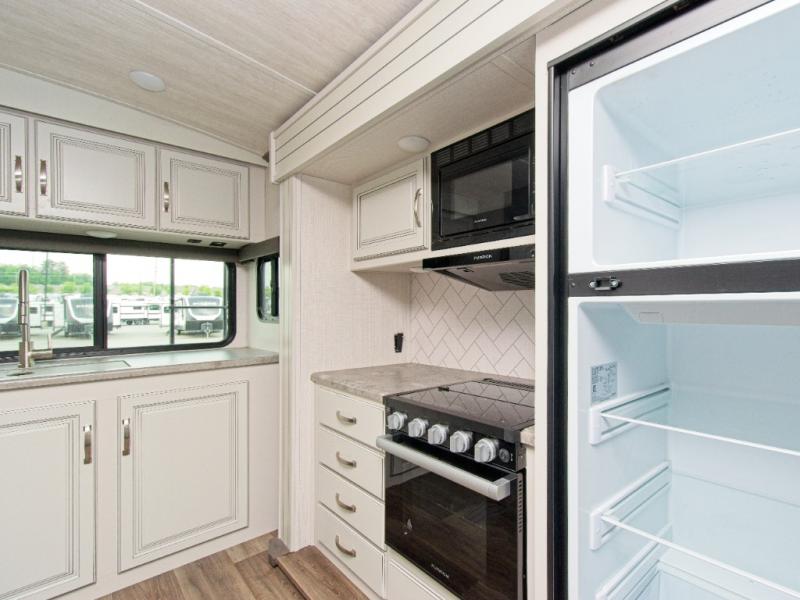 Cook your favorite meals on the 21" Furrion range with Piezo ignition, and enjoy the integrated SolarFlex 200 solar power system, providing continuous charge for 12V systems and battery protection.