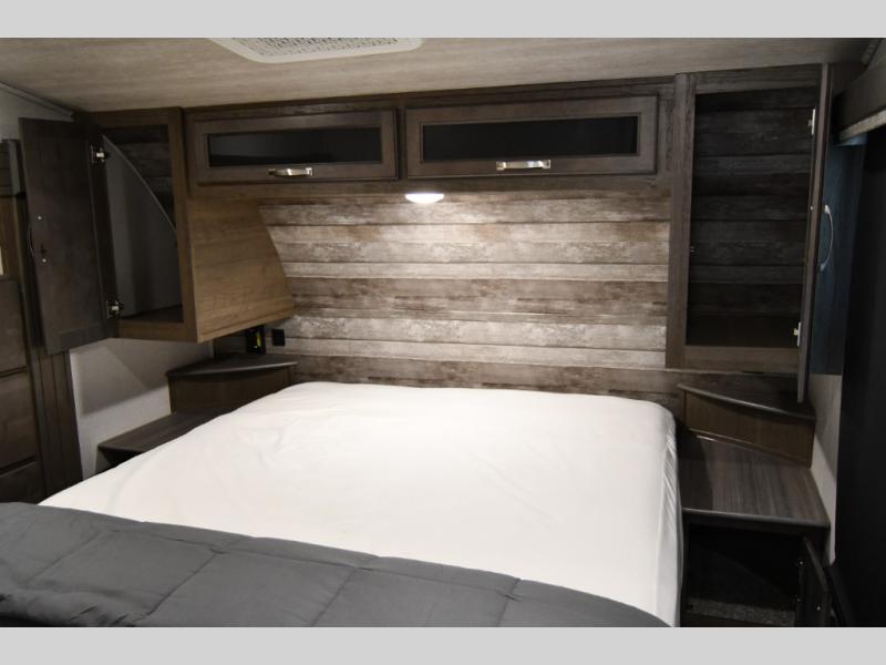 Keystone’s Cougar line is known for its durable construction, lightweight engineering, and four-season capabilities. The 25RES is ideal for couples who want to travel comfortably without towing a large, cumbersome fifth wheel.