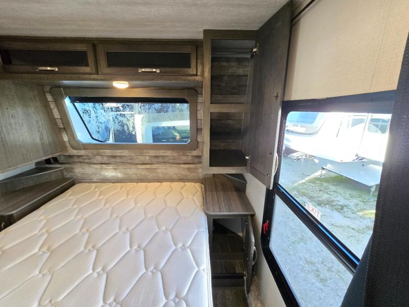 Gain some freedom to travel with this Cougar fifth wheel! You will be oh-so comfortable in the front private bedroom as you sleep on the queen-size bed, and the wardrobe slide and bedside wardrobes will provide you with clothing storage. You'll be right next to the full bathroom while you're in the bedroom, so you can easily step inside the bathroom for a quick rinse in the large shower with a glass door and skylight. The main living area offers you more space with its opposing slides, and you'll be able to get comfortable each evening on the tri-fold sleeper sofa and theater seating.