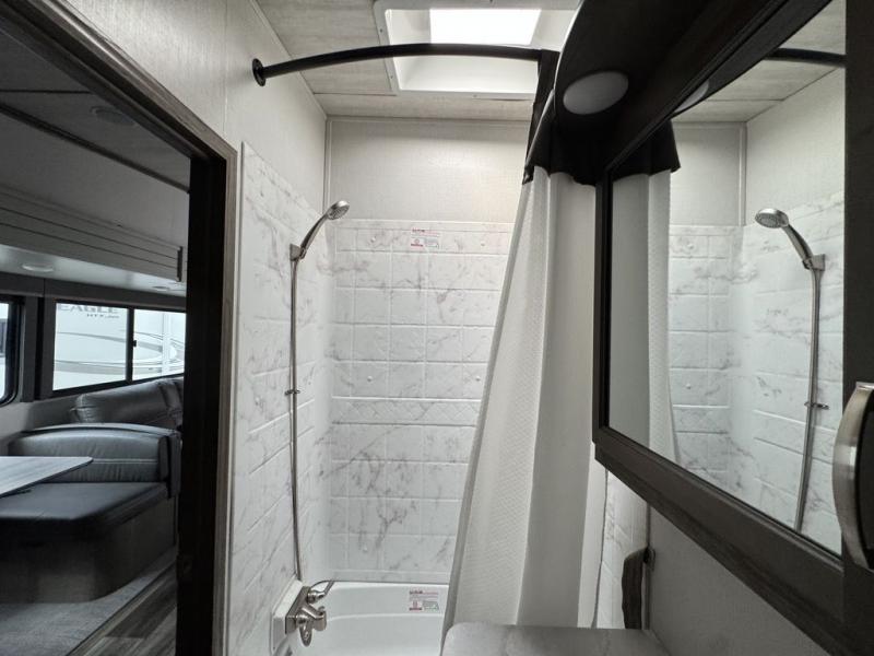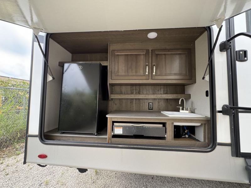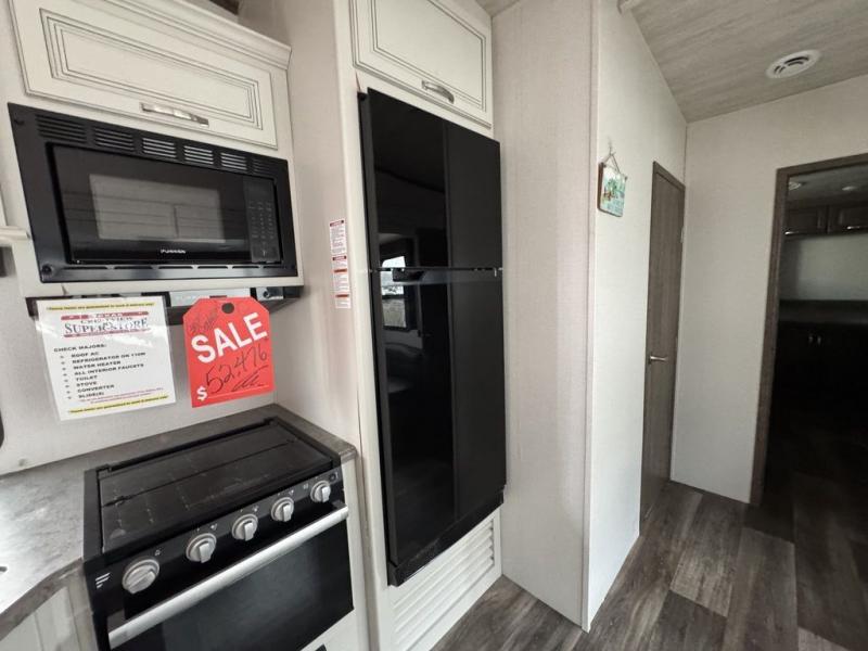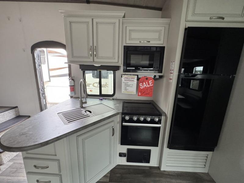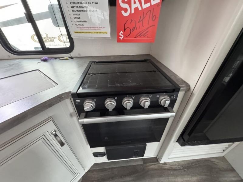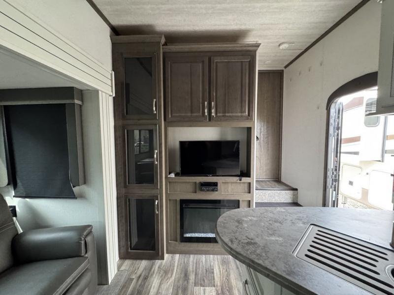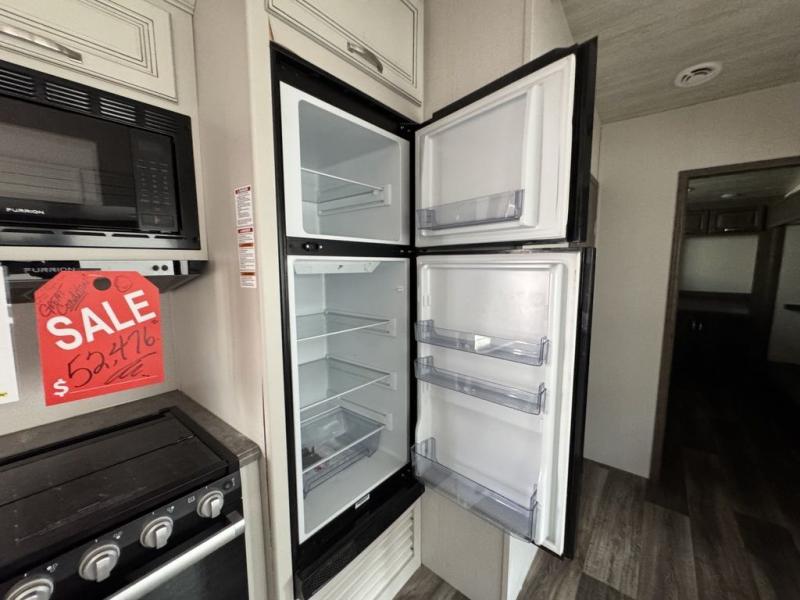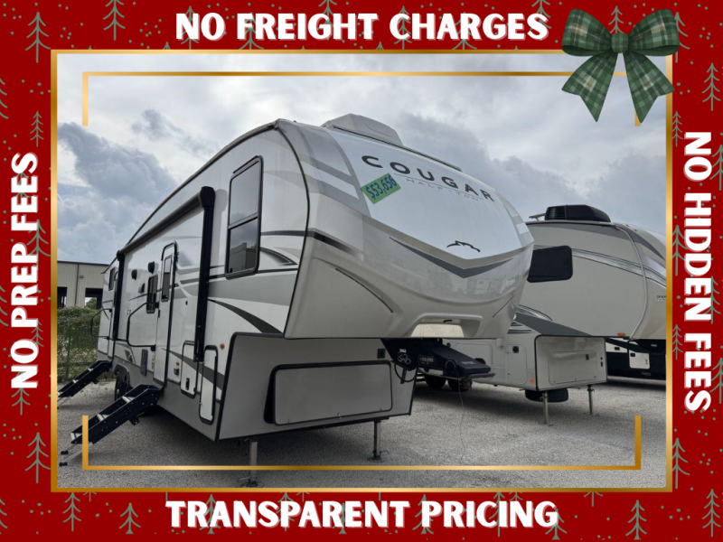You won't have any trouble convincing your friends or family to join you on an adventure with this Cougar Half-Ton fifth wheel! Since this unit has both a full and a half bathroom, it will be easy for everyone to get ready in the morning, and the 21" Furrion range will allow you to whip up a full batch of pancakes for your guests. Store any leftovers in the 10.4 cu. ft.12V refrigerator before heading out on your next exciting expedition. If you need your backpacks and hiking gear, you can grab them from the exterior pass-through storage, and you can create a cozy living area by adding the optional fireplace.
