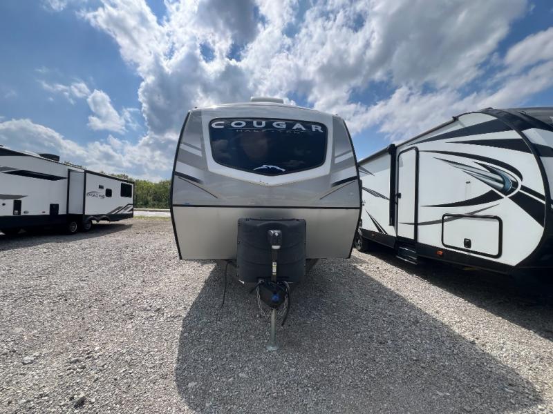 Wherever you go, you'll always have your home with you when you take this Cougar Half-Ton travel trailer along! All of the things you love most about your home have been incorporated into the design of this model. From the king-size master suite up front to the private bunkhouse in back, you'll have comfortable sleeping areas for both you and your kids. You can even have a game night together with the sleeper sofa and booth dinette in the main living area, or you can use the entertainment center to watch a movie.