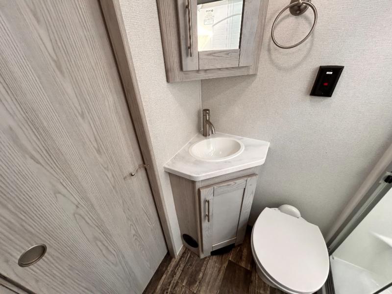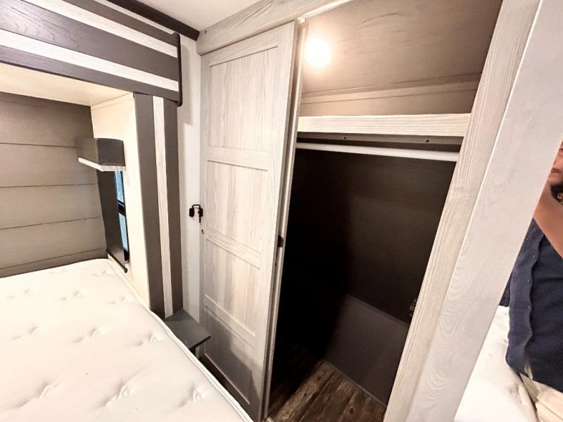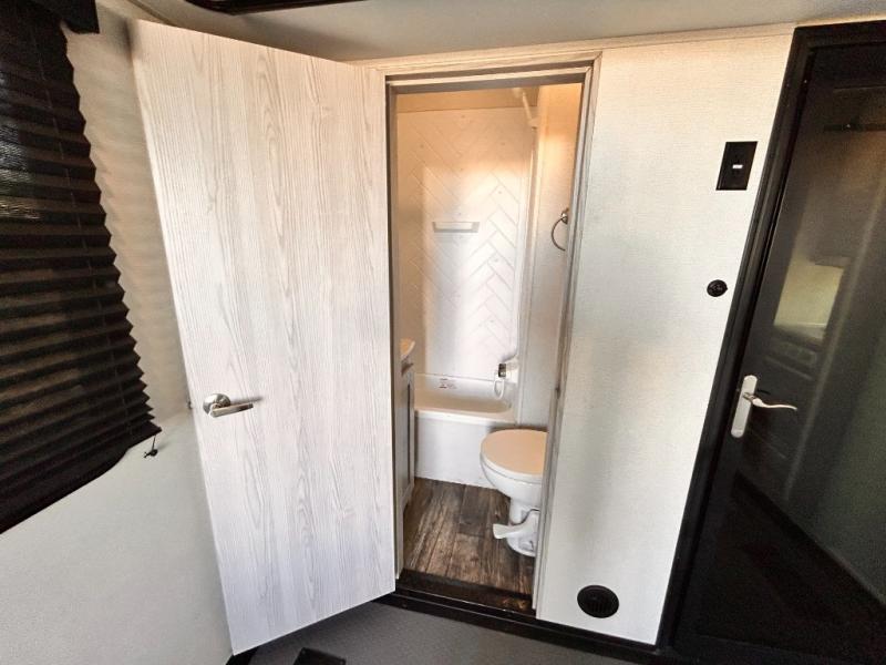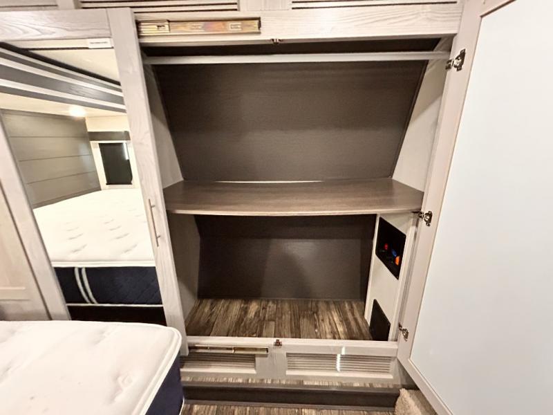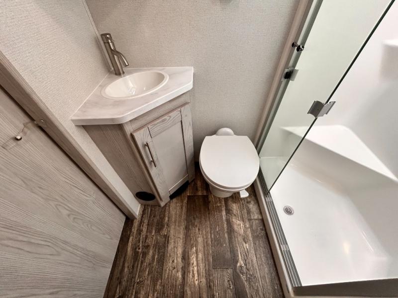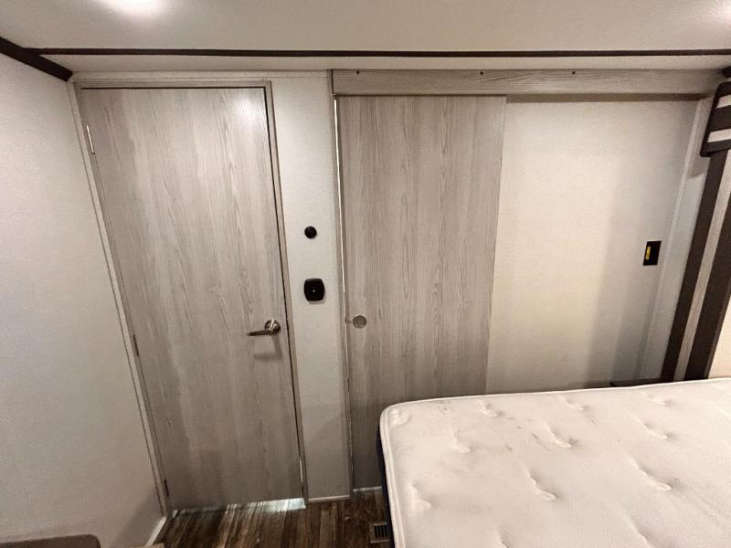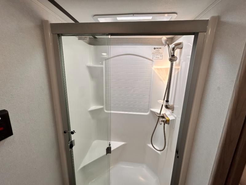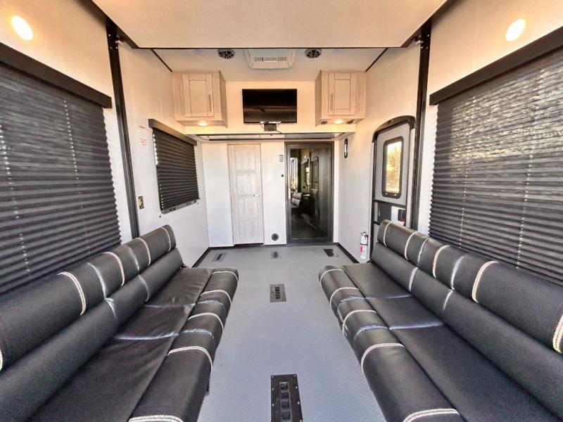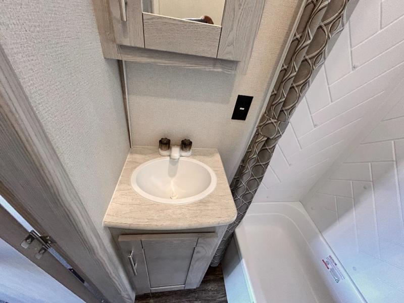 It's a clean decision to take this toy hauler on your next adventure with two full bathrooms! Everyone will have a comfortable place to lay their head at night between the residential king bed in the front private bedroom and in the 13' garage area there are dual opposing sofas with a queen bed above them and a loft with a bunk mat. The chef can prepare their best meals in the kitchen with the three burner cooktop and if you chose the to add the optional dinette slide in place of the sofa then you can enjoy your meals there and play a card game afterwards. The L-shaped sofa and two-person sofa offer a comfortable place to watch your favorite movies on the LED TV with fireplace below. There is plenty of storage throughout the inside between the front master closet and overhead cabinets, as well as the exterior with the rear Fuzion utility storage and the front Fuzion stor/mor box!